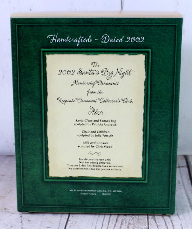 2002 Hallmark Keepsake Ornament Santa’s Big Night 4 Piece Membership Set Our Fun and Friendly Policies Customer Happiness is Our Priority: We're all about making you smile! If your purchase doesn't put a grin on your face, let us know. Your satisfaction is our mission, and we're here to make it happen. Fast Shipping, Happy Waiting: We're like a lightning bolt in the shipping world! Most orders zoom out within 1-2 business days of payment. Get ready to track your parcel's speedy journey to you. Return Cheers: Need to send something back? No worries! We're here to help with the return magic. Just remember, like a friendly handshake, you're responsible for the return shipping. Spreading Positivity: Your support means the world to us! Join our community of good vibes. Share your thoughts, leave feedback, and be part of our journey to keep the positivity flowing. Talk to Us, We're All Ears: Got questions, ideas, or just want to chat? We're all ears and ready to connect. Reach out through eBay's messaging, and expect a friendly response from our side! Your happiness is our driving force. Thanks for choosing us and letting us be part of your good times! Cunningham's Treasures