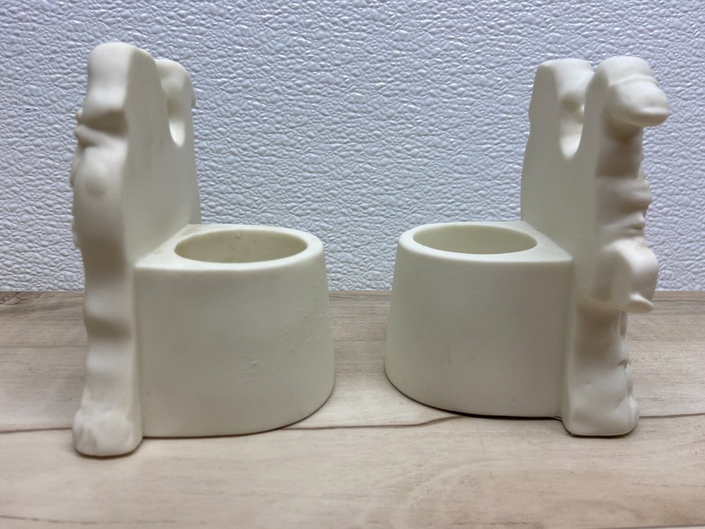 2002 Holy Night Wiseman & Camille Ivory Bisque Candle Holder Pair