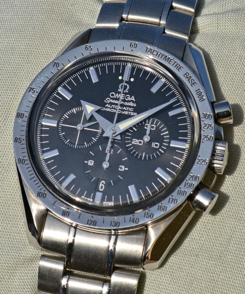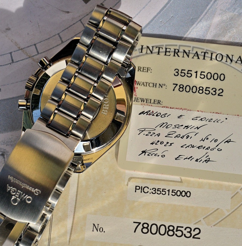 Condizione 1 (ottimo - Orologio con scatola e documenti originali i) - Omega Speedmaster OMEGA Speedmaster Broad Arrow 2002, cassa in acciaio inossidabile diametro 42,5mm., completamente originale e perfettamente mantenuto . Movimento automatico calibro 3303 n. 78008532, perfettamente funzionante con meccanismo ruota a colonna. Con data a ore 6, lancetta dei secondi del tempo a ore 9, contatore ore 6 delle ore ed a ore 3 dei minuti. Il movimento è ufficialmente certificato cronometro COSC, Finitura rodiata. Motivo "Côtes de Genève", riserva di carica: 55 ore . Finitura rodio degli indici e del logo in rilievo e delle lancette. Il vetro zaffiro è trattato x antiriflesso. Il bracciale acciaio è completo di tutte le sue maglie, quindi adatto anche a polsi di grandi dimensioni Garantisco la massima serietà e veridicità dell’oggetto. Vi do il chronograph con il suo cofanetto in mogano originale Omega e tutti i suoi documenti originali. La referenza all’interno del fondello è 178.0022. L'orologio è stato registrato da un professionista de settore in Gennaio 2026, visto il perfetto funzionamento, fornirò personale garanzia scritta di corretto funzionamento valevole per mesi 24. Garantisco la massima serietà e veridicità dell’oggetto. Riepilogo caratteristiche Genere: Orologio da uomo/Unisex Carica: Automatico colore del Quadrante: Nero Materiale della cassa: Acciaio Materiale cinturino: Acciaio Anno di produzione: 2002 Colore cinturino: Acciaio Chiusura: Déployante coperto Materiale chiusura: Acciaio Larghezza ansa (mm): 20 Larghezza fibbia (mm): 20 Cassa Diametro (mm): 42 Altezza (mm): Vetro: Vetro zaffiro Numeri sul quadrante Materiale lunetta: Acciaio Calibro Calibro/Meccanismo: 3303 Calibro di base: Numero delle pietre: Oscillazione: Funzioni: Cronografo, Data, Tachimetro . Altro: Piccoli secondi, Cronometro, Lancette luminescenti, Impostazione rapida, Originale/pezzi originali, Indici luminescenti . Segni cassa appena visibili Segni quadrante appena visibili Segni lunetta appena visibili Segni Vetro assenti Segni Fondello appena visibili Segni bracciale e chiusura appena visibili Le fotografie sono attuali dell'oggetto in vendita. * * * * * INTERNATIONAL BUYERS ARE WELCOME ASK FOR SHIPPING QUOTE I accept paypal payment only from verify member * * * * *