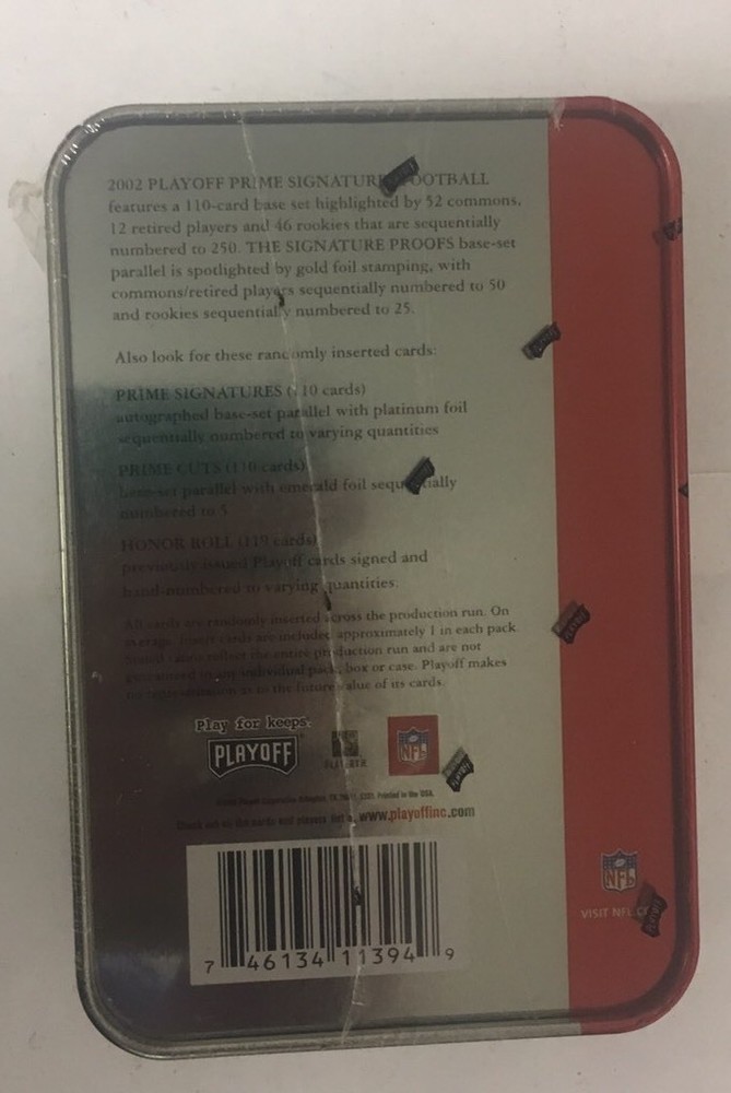 2002 Playoff Prime Signatures Factory Sealed NFL Hobby Tin Box. We will ship FREE via US Mail Priority. Please check out our other NFL items. We stock a large selection of factory sealed NFL boxes and sets.