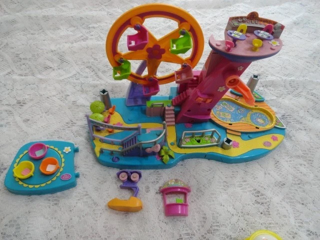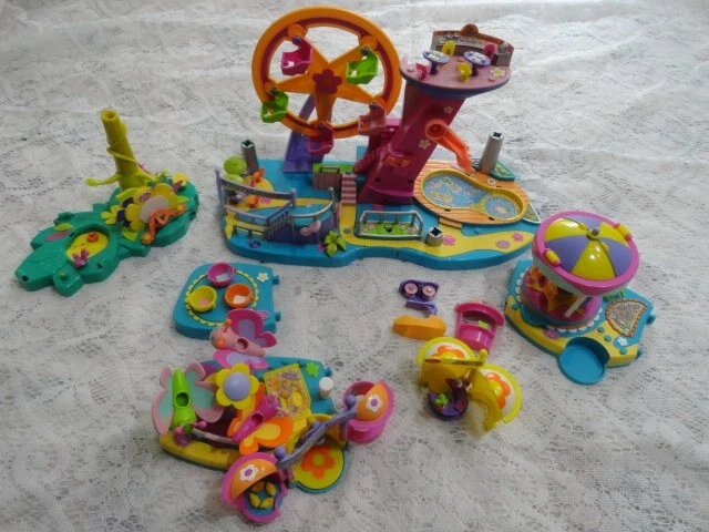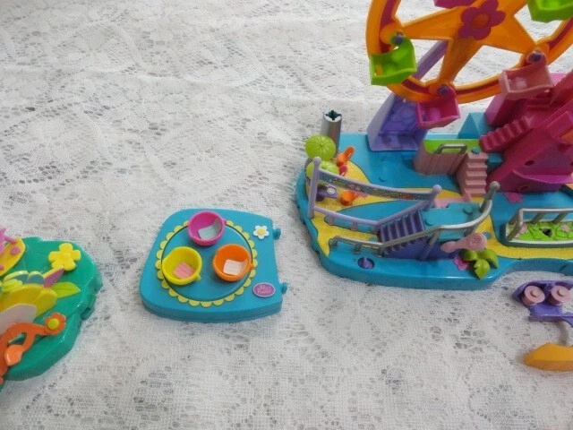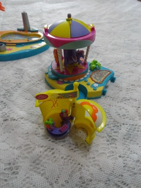 2002 Polly Pocket Playsets- Amusement Park, Carousel, Butterfly Ride, Flying Sch