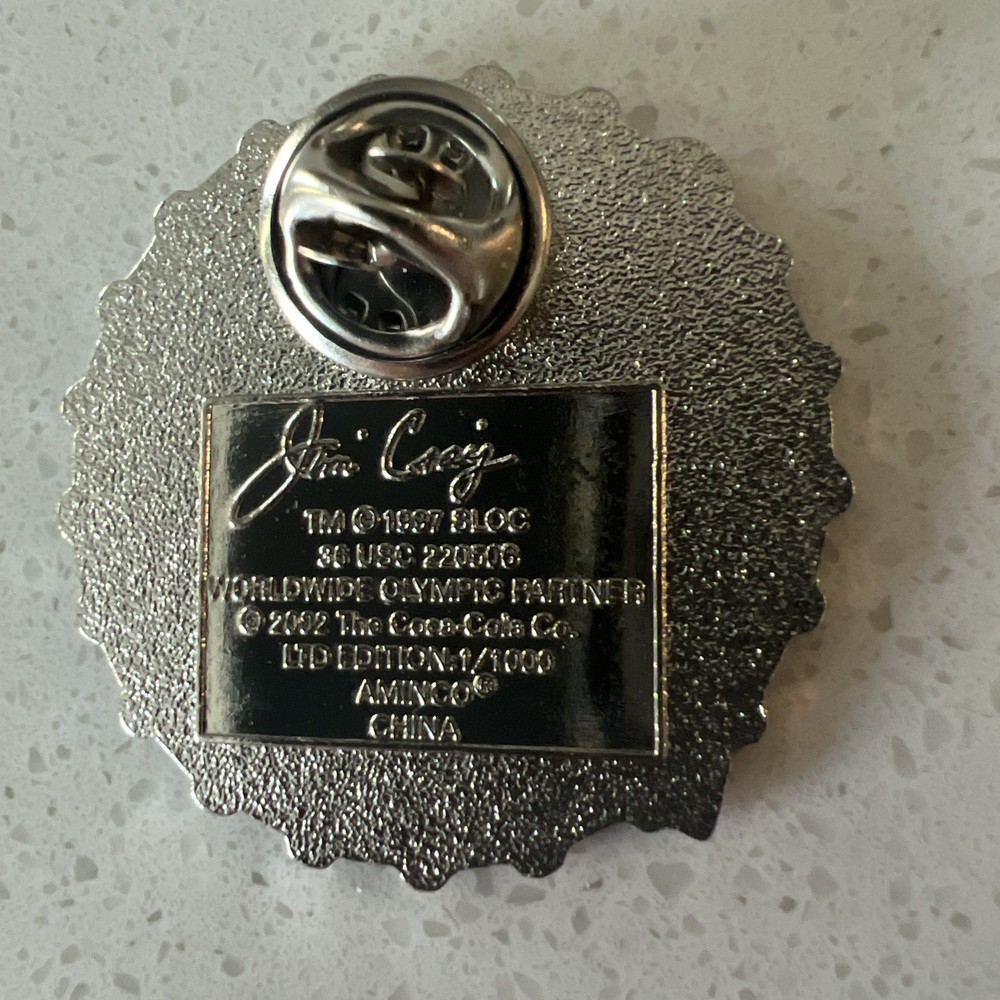 The product is a limited edition pin from the 2002 Salt Lake City Olympics, featuring Coca Cola Cap Day 3 with a hockey theme. Made in China, this collectible item celebrates the sport of hockey during the Olympic event. With only 1000 pins produced, this unique souvenir is a must-have for fans of the sport and memorabilia collectors alike.