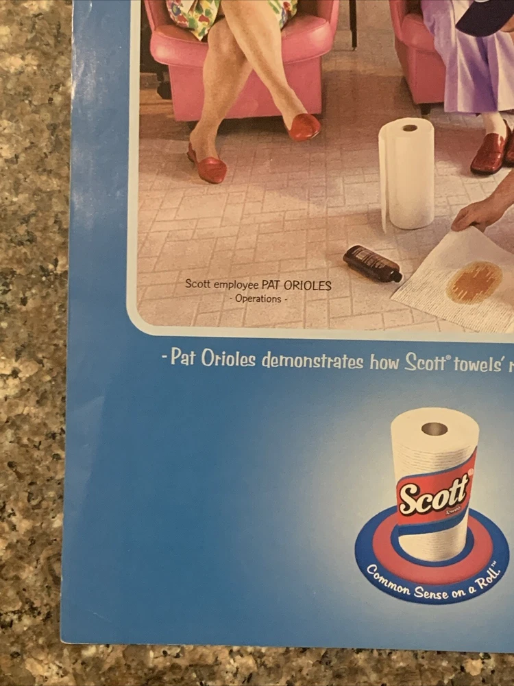 This vintage 2002 Scott Paper Towels print ad features Pat Orioles and is a must-have for collectors of advertising memorabilia. The colorful design and approximately 8"x11" page measurements make it a great addition to any collection. The ad is a magazine print ad created in the United States and is in great shape for its age. It falls under the categories of 1990-Now, Advertising-Print, Merchandise & Memorabilia, Advertising, and Collectibles.