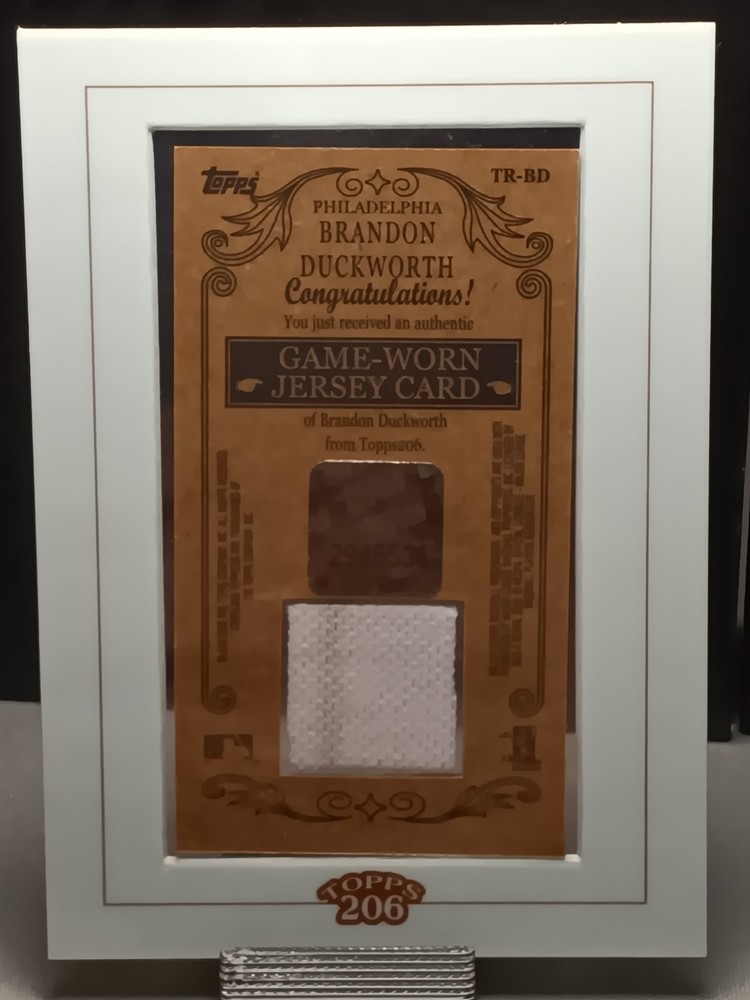 Uncover a piece of baseball history with the 2002 Topps 206 Relics #TRBD featuring Brandon Duckworth of the Philadelphia Phillies. This trading card is a cherished collectible for any fan of the sport or collector of baseball memorabilia. The card showcases Duckworth, capturing a moment of his career, and is a must-have for those who appreciate the nostalgia and legacy of Major League Baseball. Crafted by Topps, a trusted name in sports card manufacturing, this card is part of the 2002 Topps 206 set and is presented in standard card stock size with a 35 Pt. thickness. It is a genuine original, not a reprint, ensuring its authenticity. The card is in English and comes from a print run marked as SP, adding a level of exclusivity to this piece. Add this Brandon Duckworth relic to your collection and own a piece of the 2002 MLB season.