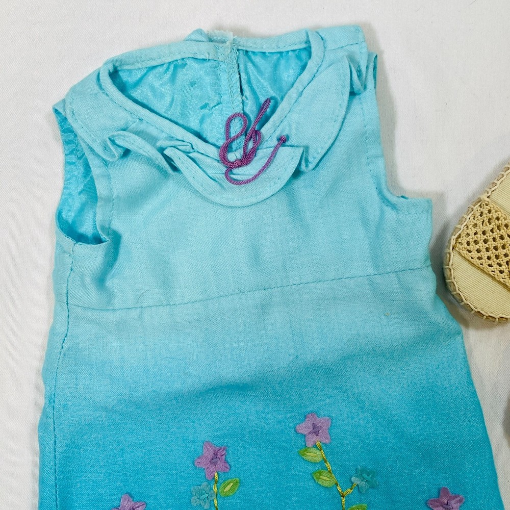 18" American Girl Doll 2003 GOTY Kailey Hopkin's Meet Outfit: Blue Dress & Macrame Sandals. In excellent pre-owned condition, no flaws noted. Please see all pictures for exact cosmetic condition and other details, as they are part of the description as well, and ask any questions before purchasing. We are a husband and wife team with a growing family, and greatly appreciate your support of our small business. Please browse our eBay store for a variety of other American Girl items. We hope you enjoy this set!