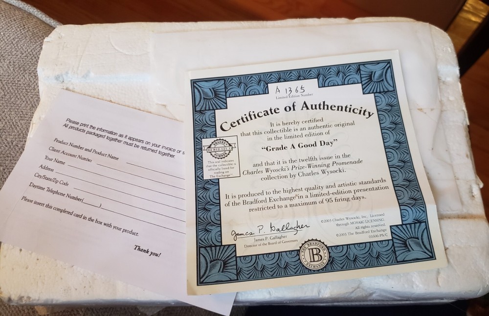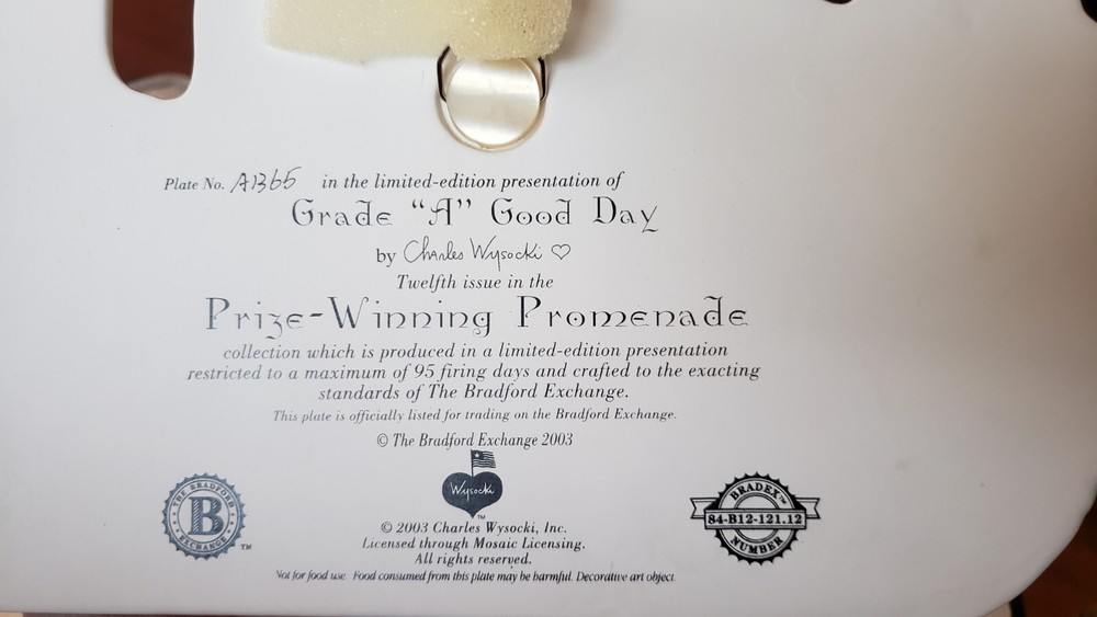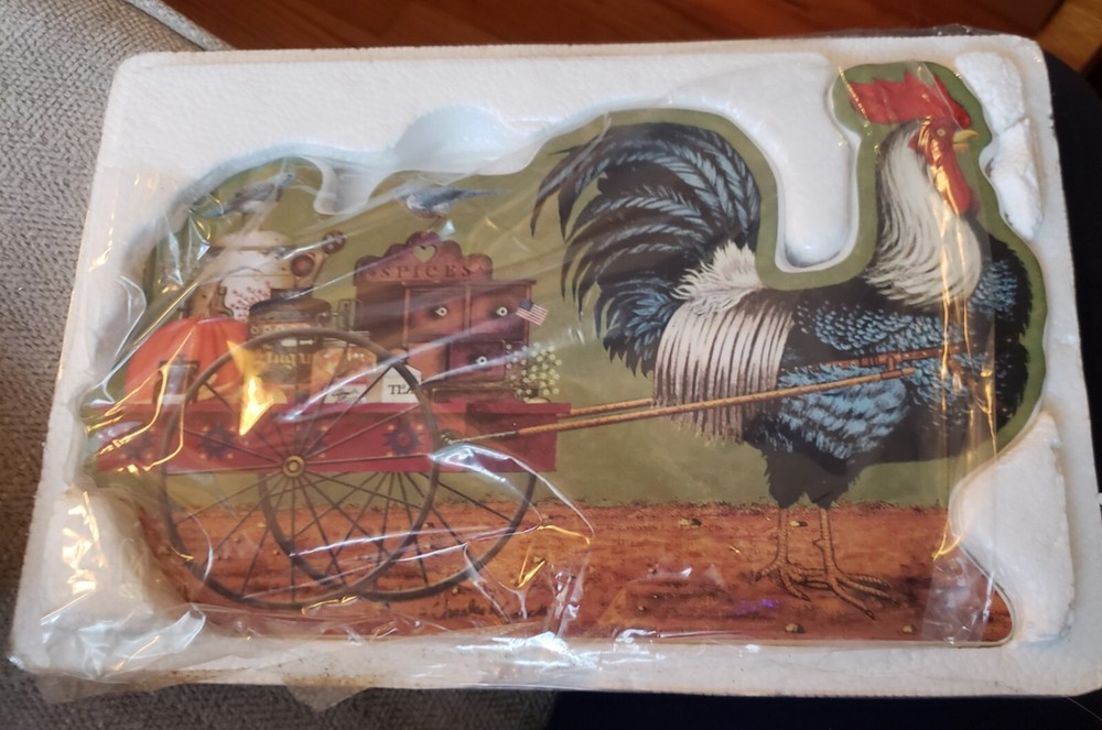 2003 CHARLES WYSOCKI PRIZE WINNING PROMENADE PLATE, GRADE "A" GOOD DAY This lovely plate features a rooster pulling a cart of sugar, spices, and tea. There are so many gorgeous details in this scene! This is a true collector's piece and comes with the original box and Certificate of Authenticity. This plate would look super cute hanging on your wall or on in the kitchen! Please message me if you have any questions and thank you for looking! #folkart #rooster #charleswysocki #countrykitchen