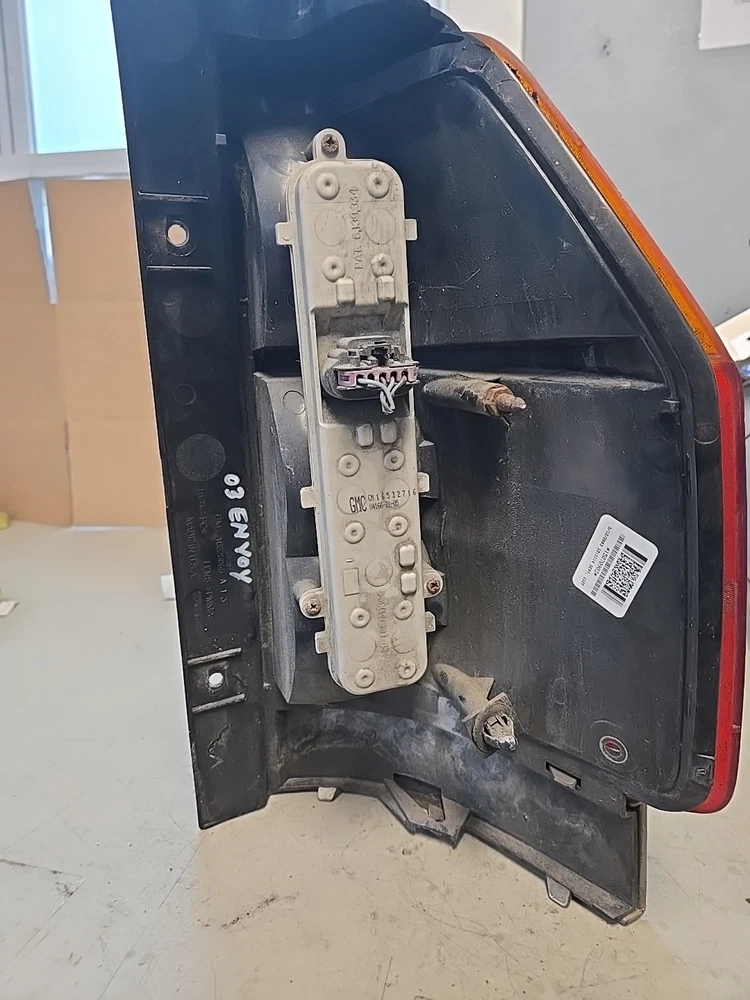 USED 2003 GMC Envoy LH Driver Side Tail Light is a genuine GM replacement part that is specifically designed for the left side of the vehicle. This tail light assembly is a high-quality component that is essential for maintaining safety and visibility on the road. Made by GMC, this tail light is sure to provide a perfect fit and function seamlessly with the vehicle's existing lighting system. Whether you are looking to replace a damaged or malfunctioning tail light or simply want to upgrade to a genuine GM part, this 2003 GMC Envoy LH Driver Side Tail Light is a reliable choice.