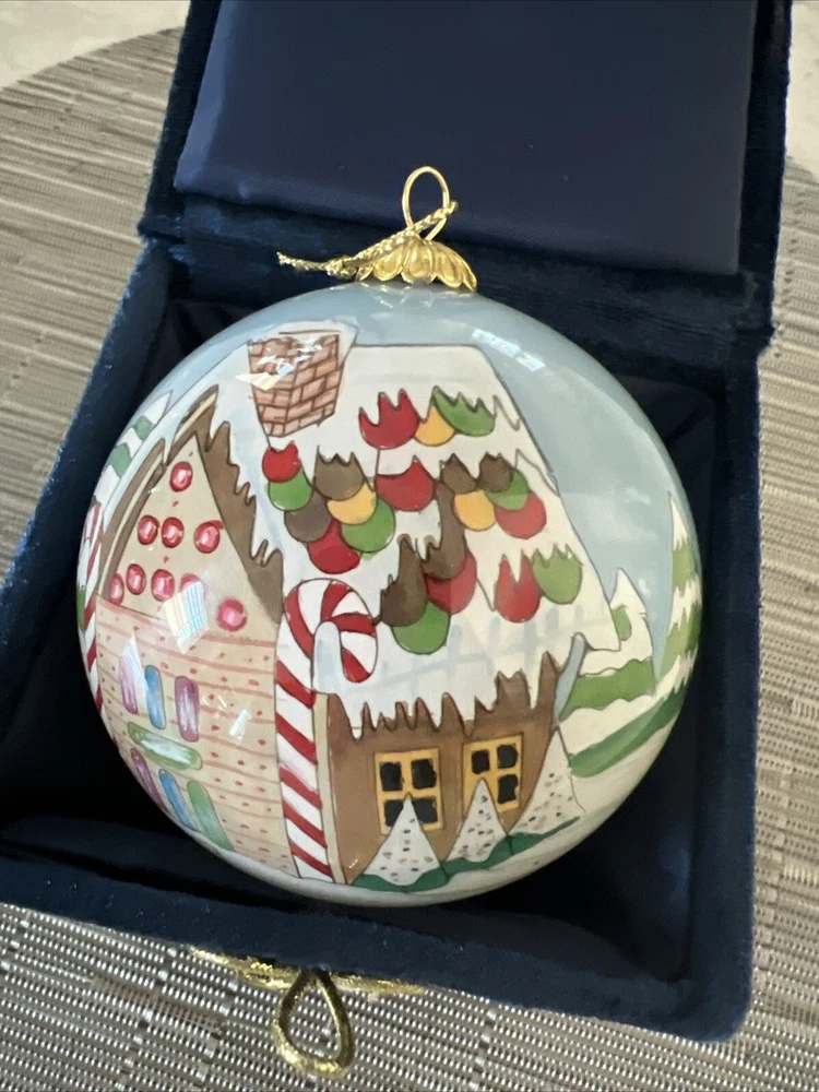 Home2003 Pier 1 Li Bien Gingerbread House Reverse Hand Painted Globe Ornament Nos