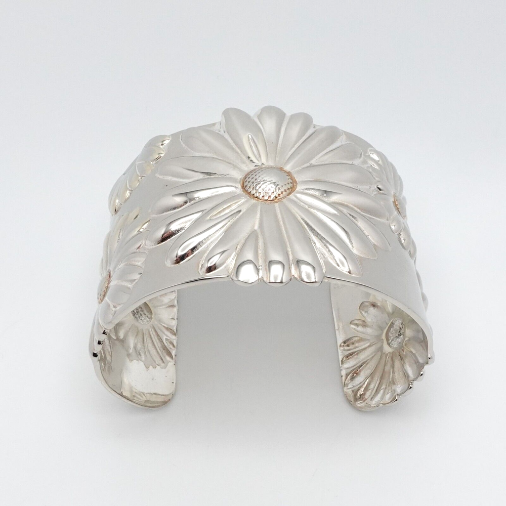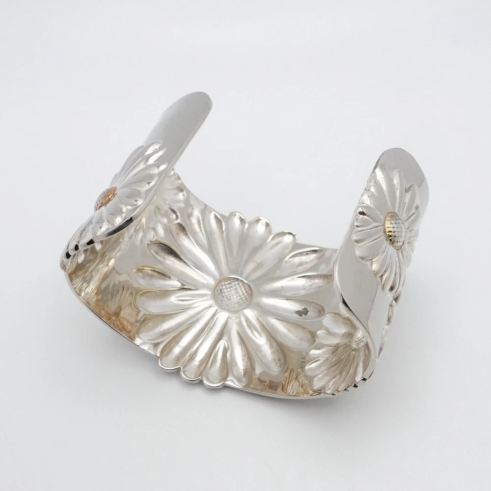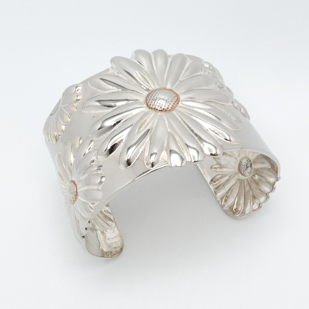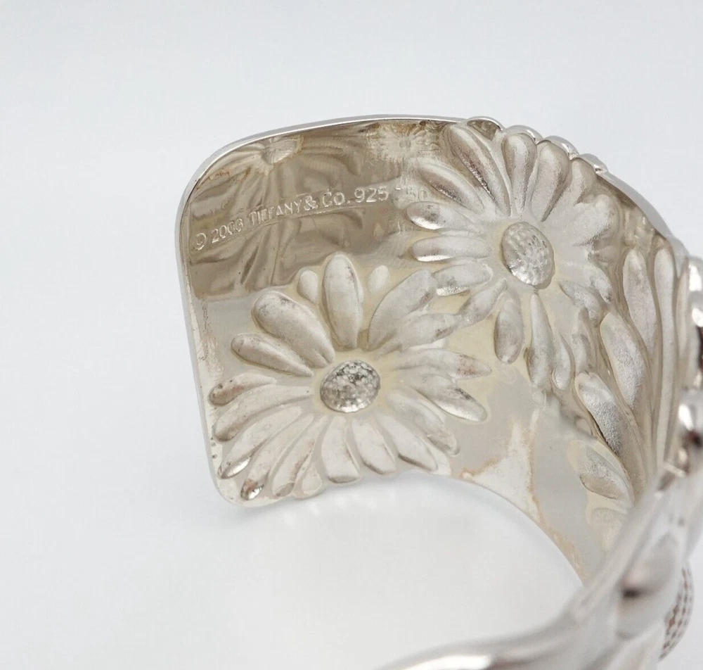 Welcome to my e B a y Store 2003 Tiffany & Co. Sterling Silver Daisy Flower Wide Cuff Bracelet Fits up to 7" Wrist Size w/o gap - 5.35" Diameter - 2.5" Bracelet Width - 1.75" Total Weight - 79.5 Gram Hallmark - 2003 TIFFANY & CO. 925 750 Great Vintage & Professionally Polished Comes with a Tiffany Bag Included *Please note, this cuff bracelet is NOT flexible to adjust** Customized due to gold worn off overtime Bid With Confidence Feel Free to ask any questions before bidding please If you would like additional pictures please send me a message Check out my other listings for more great deals! 100% Authentic or your Money Back Guarantee!! Free Shipping on All Items!