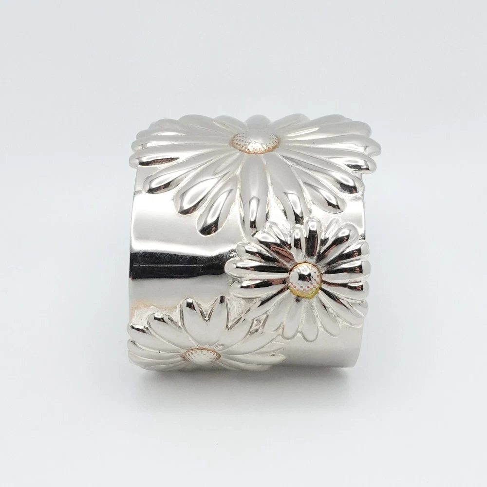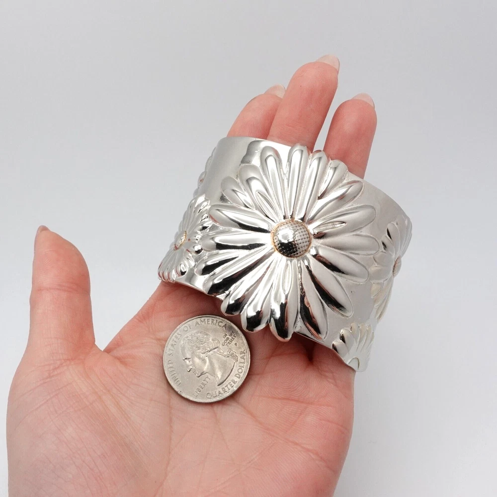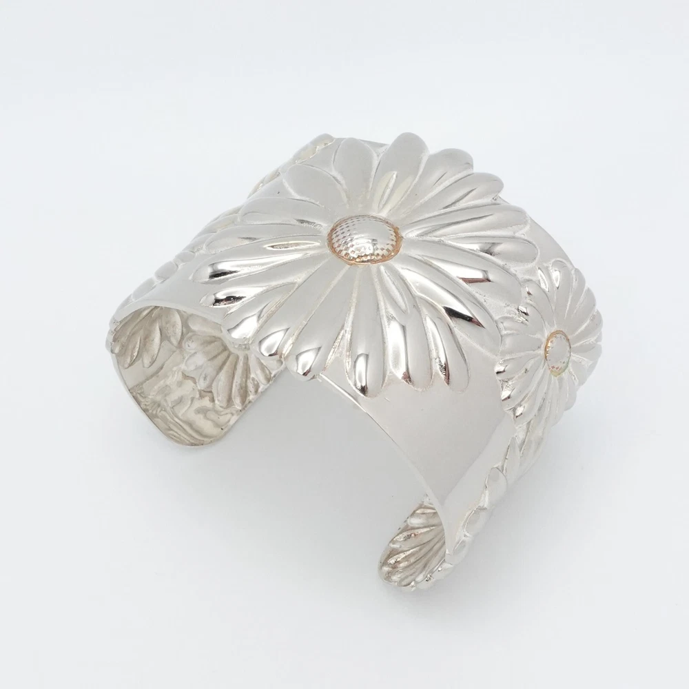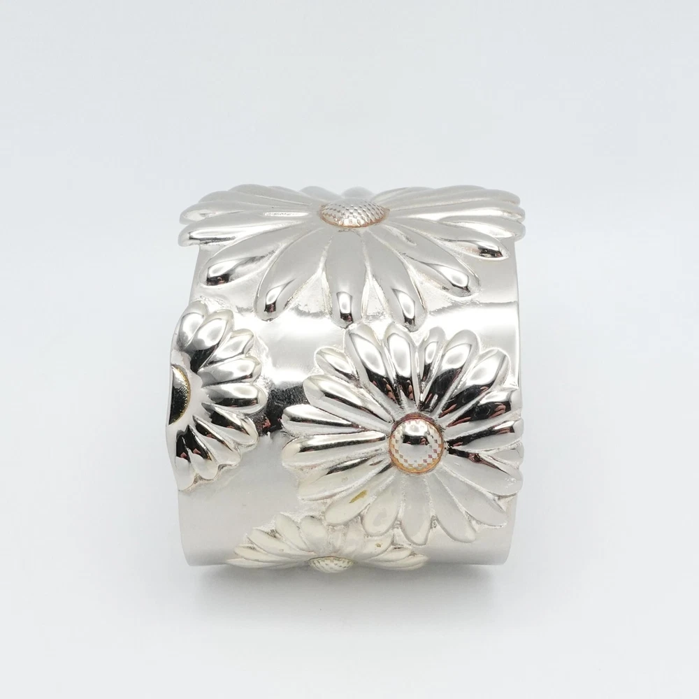 Welcome to my e B a y Store 2003 Tiffany & Co. Sterling Silver Daisy Flower Wide Cuff Bracelet Fits up to 7" Wrist Size w/o gap - 5.35" Diameter - 2.5" Bracelet Width - 1.75" Total Weight - 79.5 Gram Hallmark - 2003 TIFFANY & CO. 925 750 Great Vintage & Professionally Polished Comes with a Tiffany Bag Included *Please note, this cuff bracelet is NOT flexible to adjust** Customized due to gold worn off overtime Bid With Confidence Feel Free to ask any questions before bidding please If you would like additional pictures please send me a message Check out my other listings for more great deals! 100% Authentic or your Money Back Guarantee!! Free Shipping on All Items!