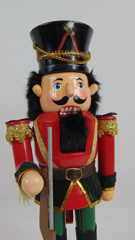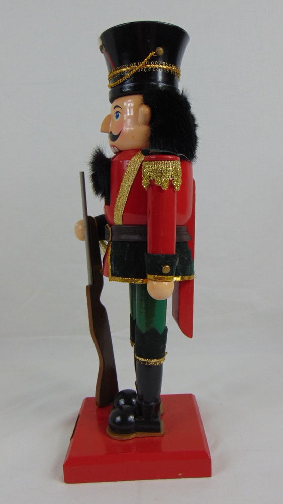 Home2003 Wooden Soldier Nutcracker 14" Christmas Decor Red Green Uniform With Rifle