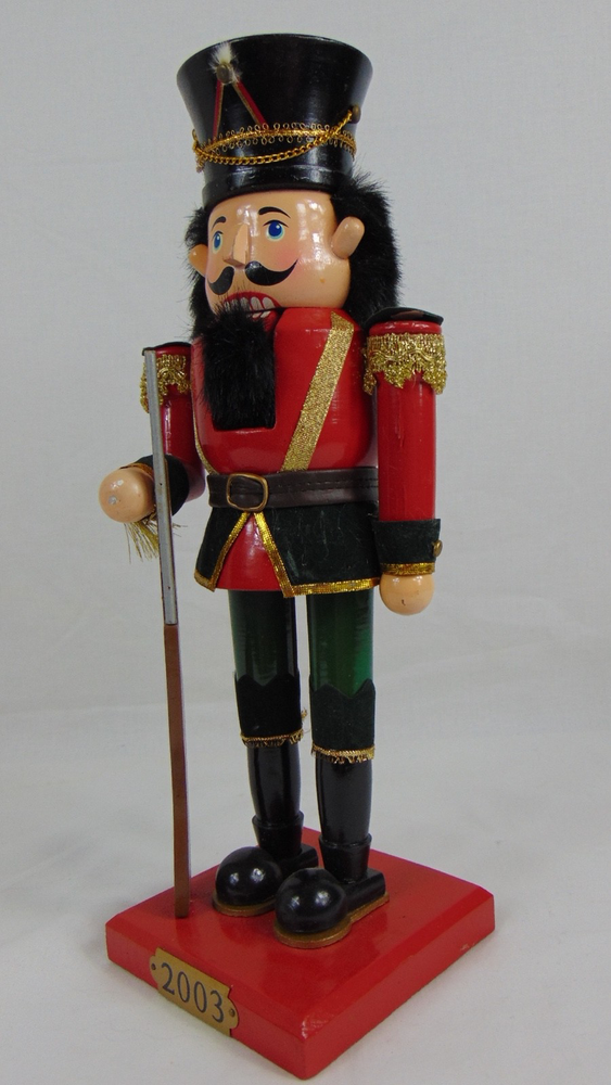 2003 Wooden Soldier Nutcracker 14" Christmas Decor Red Green Uniform With Rifle About 14" tall.
