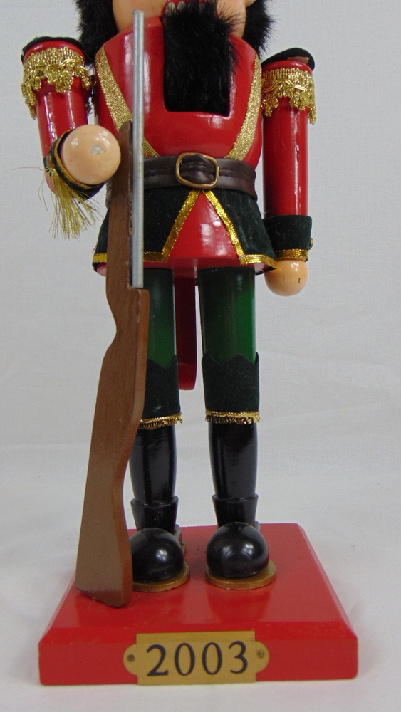 2003 Wooden Soldier Nutcracker 14" Christmas Decor Red Green Uniform With Rifle