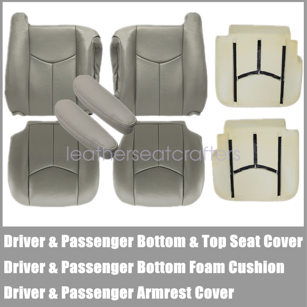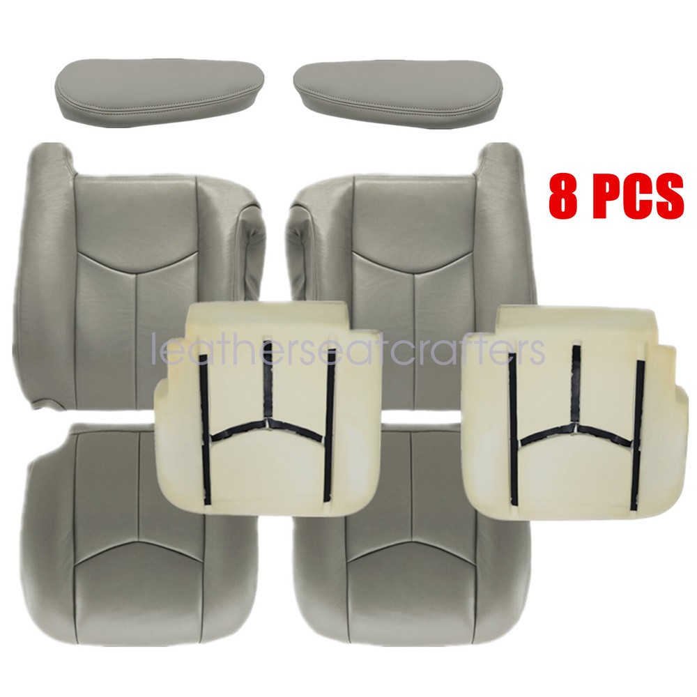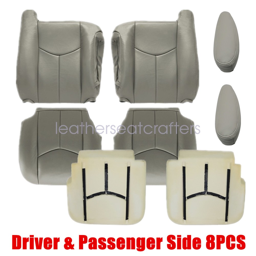 For 2003-2006 GMC Sierra Yukon Front Leather Seat Cover & Foam Cushion Gray 922 Details For 2003 2004 2005 2006 Chevy/GMC Silverado Tahoe Suburban Avalanche & Yukon Sierra Driver & Passenger Side Replacement Bottom & Top Leather Seat Cover & Foam Cushion & Armrest Cover Pewter Gray Color Code 922 or 92i Specifications: Name: Driver & Passenger Replacement Leather Seat Cover & Foam Cushion & Armrest Cover Pewter Gray Color: "Pewter Gray" - Factory's Match Color Code: " 922 or 92i " Located in your Glove Box Sticker Material: Microfiber Leather & Foam Make: Chevy/GMC Model: 2003 2004 2005 2006 Chevy/GMC Silverado Tahoe Suburban Avalanche & Yukon Sierra Heated Seats: Fits Heated Seats and Non Heated Seats Power Seats: Fits Power Seats and Non Power Seats Vehicles Seat Cover's Attached Padding: ½ Inch attached foam padding Fitment: 2003 2004 2005 2006 Chevy/GMC Silverado Tahoe Suburban Avalanche & Yukon Sierra 2003-2006 Chevy Silverado 1500 2500 3500 HD LT, LS, LTZ, Z71 2003-2006 GMC Sierra 1500 2500HD 3500HD SLT, SLE, Z71, Hybrid 2003-2006 Chevy Suburban 1500 2500 LT, LS, LTZ, Z71 2003-2006 Chevy Tahoe LT, LS, LTZ, Z71, Hybrid 2003-2006 Chevy Avalanche LT, LS, LTZ, Z71, Black Diamond 2003-2006 GMC Yukon Denali, Hybrid, XL 1500 2500 Package Content: 2x Bottom Seat Cover & 2x Back Seat Cover (Driver & Passenger Side) 1x Driver Bottom Foam Cushion & 1x Passenger Bottom Foam Cushion 2x Armrest Cover (Driver & Passenger Side) If you do not know how to install, please contact us, We can provide video installation instructions Tips: This Driver & Passenger Replacement seat cover & Armrest Cover, built to factory specs with Quality Microfiber Leather to match the Interior of your vehicle! Our product is exactly the same as your existing cover and guaranteed to fit perfectly on your seat foam Pad. Any wrinkles seen in the pictures is from being in a box and guaranteed to disappear once installed Correctly. Please Note: Actual Replacement Cover. NOT A SLIP ON or PULLOVER. You will remove the old cover & then install the New Cover. Communication is the best way to solve the problem. If you have any problems after purchasing, please contact us in time, before opening return or case. Shipping policy: Payment: Returns: About us: Shipping policy: 1.Orders are usually shipped within 24 hours after your payment(except weekends & official holidays). You can log on to eBay to check your logistics tracking number. 2.Please make sure to provide us with correct,precise and detailed shipping address before purchase, and cannot change it once purchased. Payment: PayPal payment accepted only.Please purchase and pay for the item through the eBay. Returns: 1.If any item is defective upon receipt or do not work, please contact us for the condition,we will provide a solution for such cases. 2.Return is accepted within 30 days after the buyer receiving the item. About us: 1.Thanks for purchasing in our store,if you have any questions, please contact us immediately. We will provide you with the high quality service. 2.If you are satisfied with our products, please give us a positive feedback. On Dec 20, 2024 at 10:36:44 PST, seller added the following information: