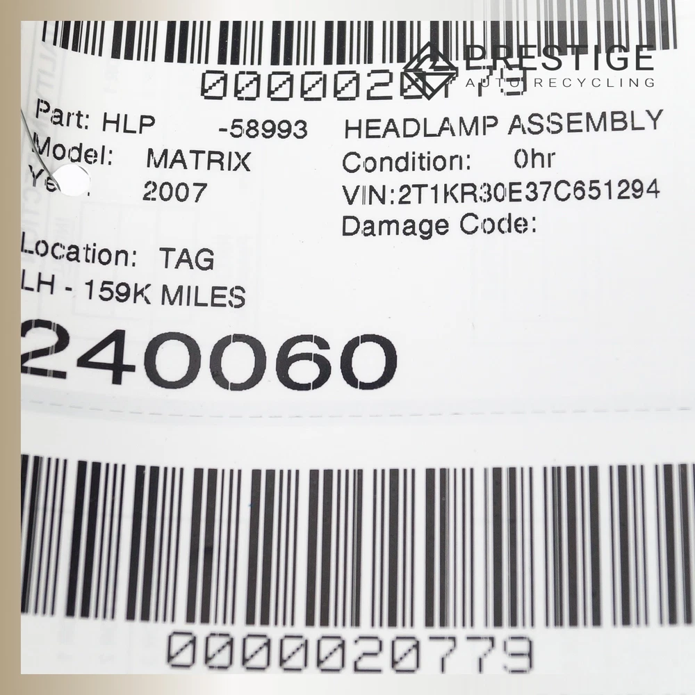 Prestige Auto Parts - Product Page Local pick-up available at 3400 Sunrise Blvd, Rancho Cordova, CA 95742 2003-2008 TOYOTA MATRIX Headlamp Headlight Left 81150-02220 OEM Not sure if the part fits? Send us your VIN, and we'll verify compatibility for you! Item Condition The item is in good condition, fully operational, and demonstrates normal signs of use. Please note that, as a used part, it may show light scuffs, scratches, or other minor imperfections, as shown in the photos provided. WHEN YOU BUY FROM US YOU AGREE TO OUR TERMS AND CONDITIONS: It is the buyer's responsibility to carefully inspect all of the photos for details and/or request more photos if necessary, what you see in photos is exactly what you will receive. Before purchase, the buyer MUST verify that the item will fit their vehicle. PLEASE NOTE: Make sure to verify fitment independently with your local dealer, information in the “compatibility” section is generated by eBay Motors, not from us. IF YOU HAVE ANY QUESTIONS, CONTACT US VIA EBAY MESSAGING BEFORE PURCHASING. Payment We accept PayPal, VISA, MasterCard, Discover, and American Express. Sales tax collected by eBay where applicable. For local orders, pay on pickup available. Shipping Most items ship within 24 hours of payment; items paid for on the weekend or holidays ship on the following business day. We ship by FedEx, UPS, USPS, and regional freight/LTL carriers, whichever option is most affordable and/or faster. Shipping prices for ground apply only to the continental United States. Anywhere else is considered international shipping and will have an international shipping rate. Any international customs fees are the responsibility of the buyer. Any free shipping we offer is for the continental United States only. If you are from Hawaii, Alaska, or a Territory of the United States, please request a shipping total before bidding and we will do our best to keep the cost low. For orders placed outside of the United States, we ship ONLY through the eBay Global Shipping Program. If you are outside of the US, use the eBay international shipping tool above to receive a price for shipping costs. Local pickup and delivery options also available, please contact us for arrangements. PLEASE NOTE: Oversized items like engines, transmissions, bumpers, doors, hoods, trunk lids, fenders and other similar items will be shipped via Freight Shipping and MUST be shipped to a business address with a dock or forklift access; otherwise, liftgate and/or residential delivery fees may apply. YOU MUST CONTACT US FIRST FOR A QUOTE BEFORE PURCHASING SAID ITEMS. Warranty and Returns All returns must be made within 30 days of item being received by the customer only if the item is non-functional or if it differs substantially from the description. Buyer is fully responsible for shipping cost of the return. We are not liable to pay for any labor fees associated with the installation or removal of any parts sold by us. All electronics are tested before removed from vehicle. IF NOT FUNCTIONAL, WE WILL NOT SELL. If the item is defected we will state accordingly and is sold for parts only. If you have any questions about the part you’re bidding on, PLEASE ASK QUESTIONS PRIOR TO BIDDING. 90 DAY WARRANTIES are available. Contact Us If you have questions about any part, please contact us BEFORE purchasing via eBay messaging. HOW DID WE DO? We are a small, family owned business dependent on our valuable customers. Once you have received your item in satisfactory condition, would you be so kind as to leave us feedback? If there is a concern that would cause you to want to leave negative feedback, please contact us first and we will do our best to resolve the issue. Thank you and God bless! © 2025 Prestige Auto Recycling. All rights reserved.