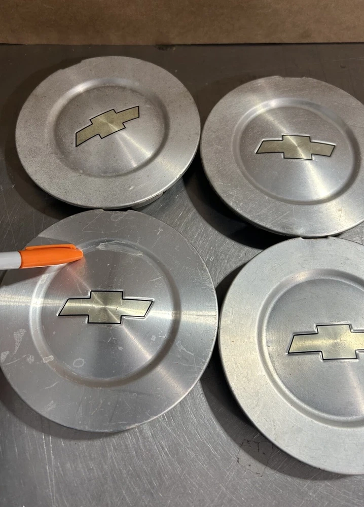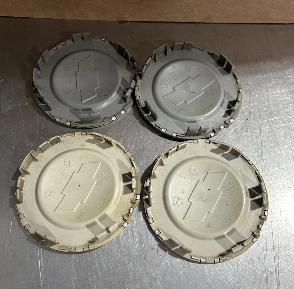 This is a 4-pack of Chevrolet Trailblazer EXT wheel center caps with a brushed aluminum finish featuring machined aluminum with a gold center. The caps are silver in color and made of plastic. They are designed for placement on the rear, left, front, and right sides of the vehicle. The manufacturer part number is 9595108. condition is fair. There are some marks scuffs and minor blemishes all tabs are intact. The center caps you see in the pictures of the ones that will be shipped. please verify with the part number prior to making a purchase for a better fit for your vehicle. If a return is needed, please contact us prior to make it a return request. If satisfied with product and service positive feedback is greatly appreciated , Thank you
