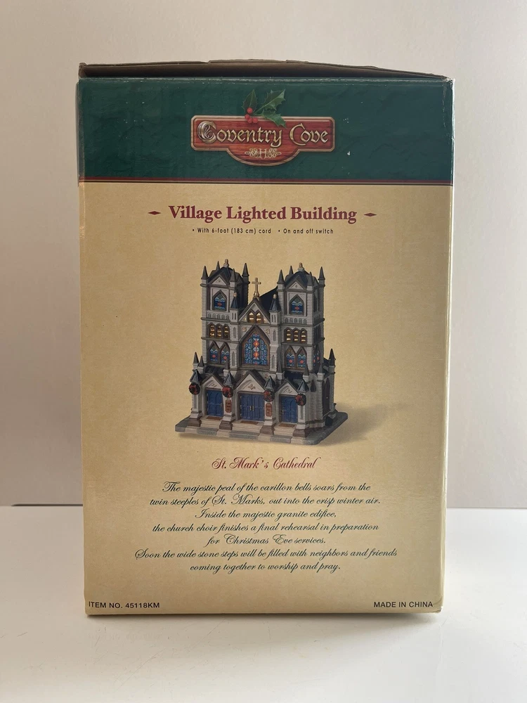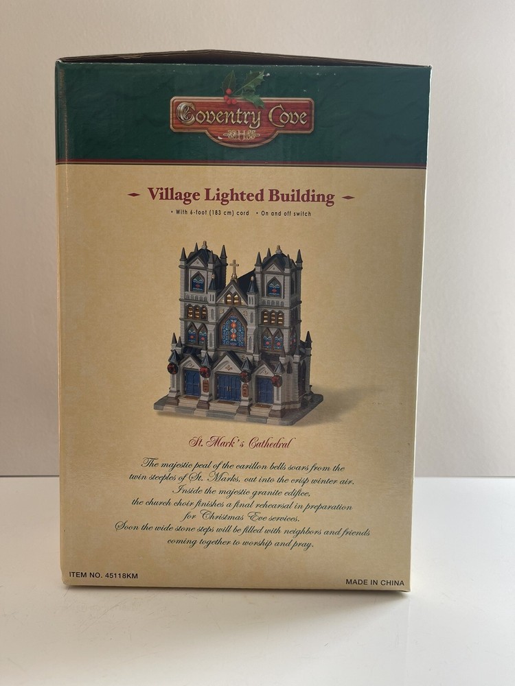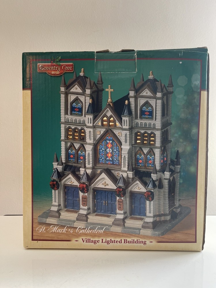 2004 Lemax Coventry Cove Christmas Village Lighted Building St Marks Cathedral Item is new. Box shows wear from storage. Accessories are all in their original packaging in the box. Light was plugged in to make sure bulb works. Please SEE PHOTOS for item condition