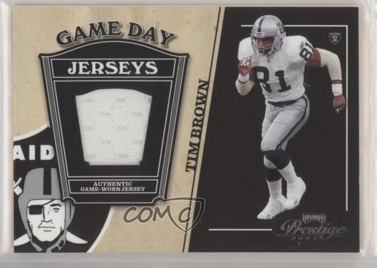This is a must-have for Raiders fans and collectors! The 2004 Playoff Prestige Game Day Jerseys card featuring Tim Brown is a fantastic piece of memorabilia. The swatch looks great, and the design captures the prestige of this Hall of Famer. A solid addition to any football card collection—highly recommended!