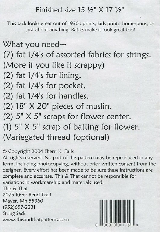 #C8260 Original pattern from 2004 by This & That #003 for String Sack. Purse has a buttoned fabric closure, flower decor. Uncut and in excellent condition. All sewing patterns and items that I list are original and individually inspected, with condition and completeness carefully noted. Sewing patterns include instruction sheet and yardage chart, unless stated differently above. Vintage items are sold as is. Item have had previous owners and unknown history. I do my best to accurately note any conditions. Items are safely stored in a pet free and smoke free environment. I provide careful packaging and dependable shipping. I am always happy to combine similar items to reduce shipping costs. Multiple items must be paid for on one invoice to receive discount. Reduced shipping rates for multiple similar items may apply. Ship to USA only. No International Sales.