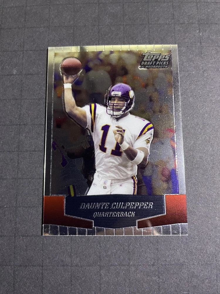 Card Number: 42 Material: Card Stock Original/Licensed Reprint: Original Set: 2004 Topps Draft Picks & Prospects Card Size: Standard Team: Miami Dolphins, Buffalo Bills, New York Jets, Denver Broncos, New England Patriots, Kansas City Chiefs, Oakland Raiders, San Diego Chargers, Indianapolis Colts, Jacksonville Jaguars, Cincinnati Bengals, Pittsburgh Steelers, Cleveland Browns, Dallas Cowboys, New York Giants, Philadelphia Eagles, Washington Commanders, Tampa Bay Buccaneers, Atlanta Falcons, Carolina Panthers, San Francisco 49ers, Seattle Seahawks, Arizona Cardinals, Los Angeles Rams, Green Bay Packers, Detroit Lions, Minnesota Vikings, Chicago Bears Type: Sports Trading Card Features: Parallel/Variety Manufacturer: Topps Language: English Sport: Football Autographed: No Player/Athlete: Daunte Culpepper Season: 2004 League: National Football League (NFL) Country/Region of Manufacture: United States