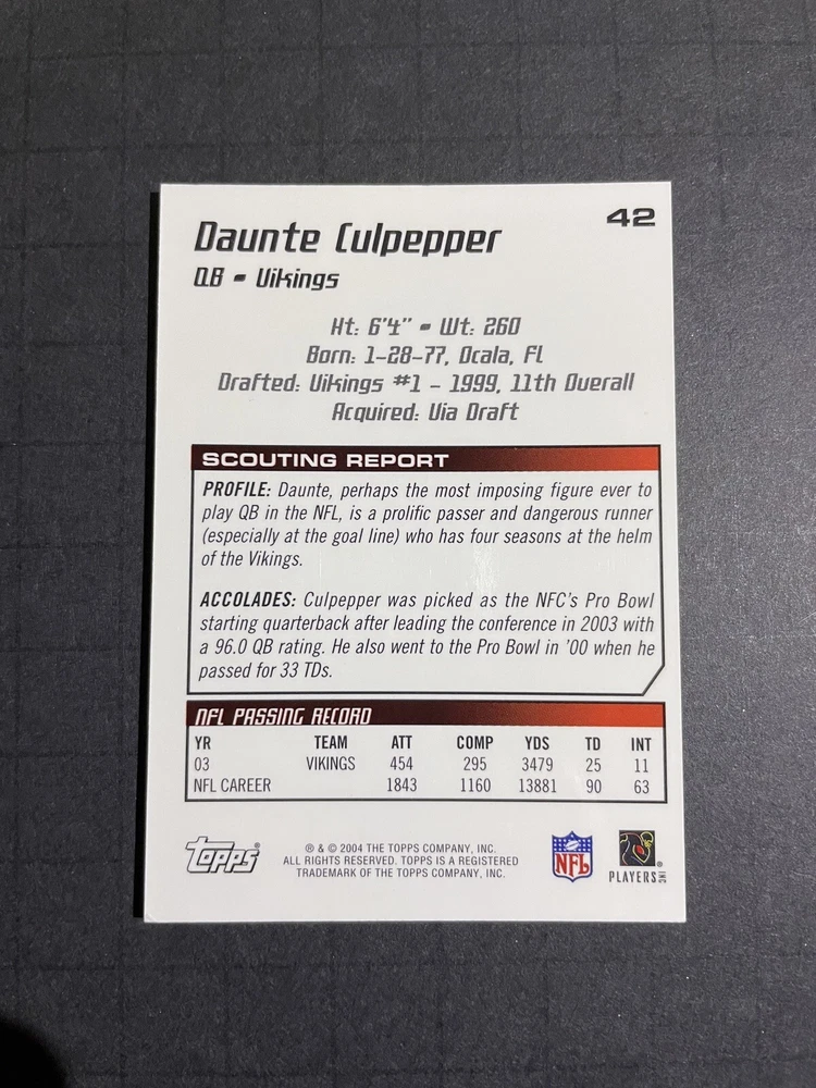 2004 Topps DPP Chrome Daunte Culpepper Card #42 - Minnesota Vikings