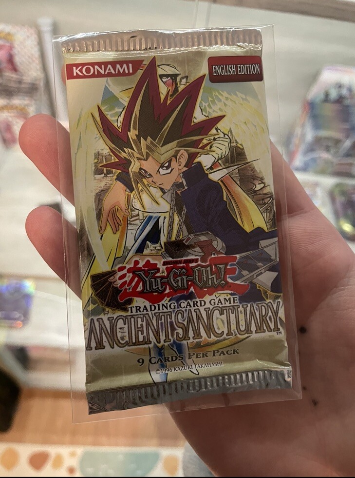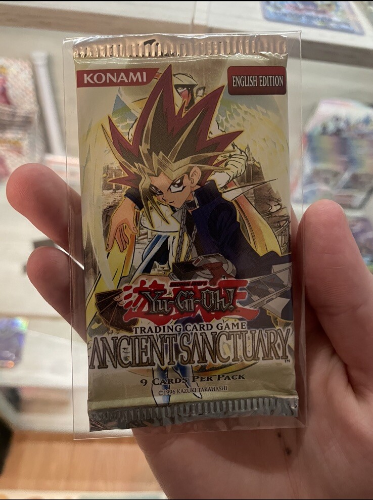 The Yugioh Ancient Sanctuary Unlimited Edition Factory Sealed Booster Pack contains 9 English-language cards from the Ancient Sanctuary set of the Yugioh Trading Card Game. Manufactured by Konami/Upper Deck in 2004, this booster pack offers players the opportunity to collect cards with various abilities and defensive powers to enhance their deck. Each pack is sealed, ensuring the cards inside are in pristine condition and ready for gameplay. This limited edition pack is a must-have for collectors and players looking to expand their card collection with cards from the Ancient Sanctuary set.
