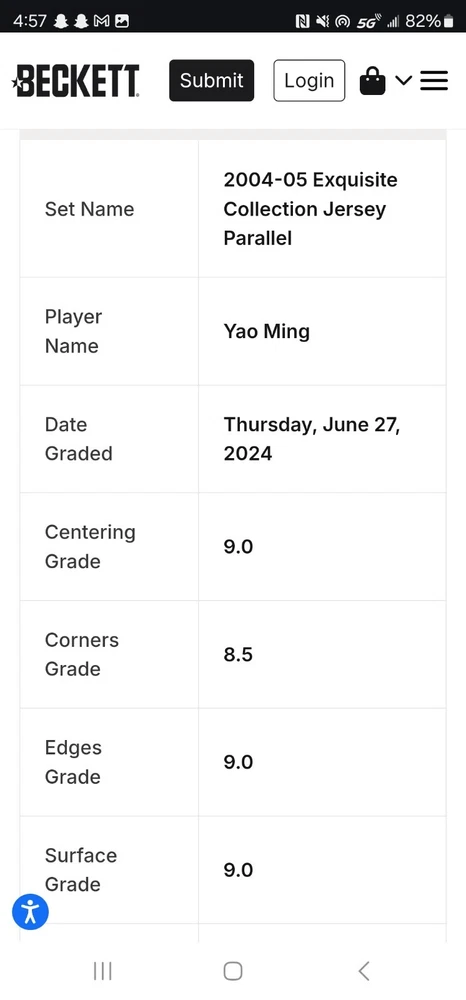 This is a POP 1 with no higher grades. This card has the serial number 9/25 This 2004-05 Upper Deck Exquisite Collection sports trading card features Yao Ming, a former Houston Rockets player, and is a must-have for any basketball fan. The card is graded a 9 by Beckett Grading Services (BGS) and is part of a limited print run of only 25. The card also includes a jersey piece and is serial numbered for added authenticity. It is a rare find and perfect for collectors looking to add to their memorabilia. This card is from the 2004-05 season and is part of the National Basketball Association (NBA) league.