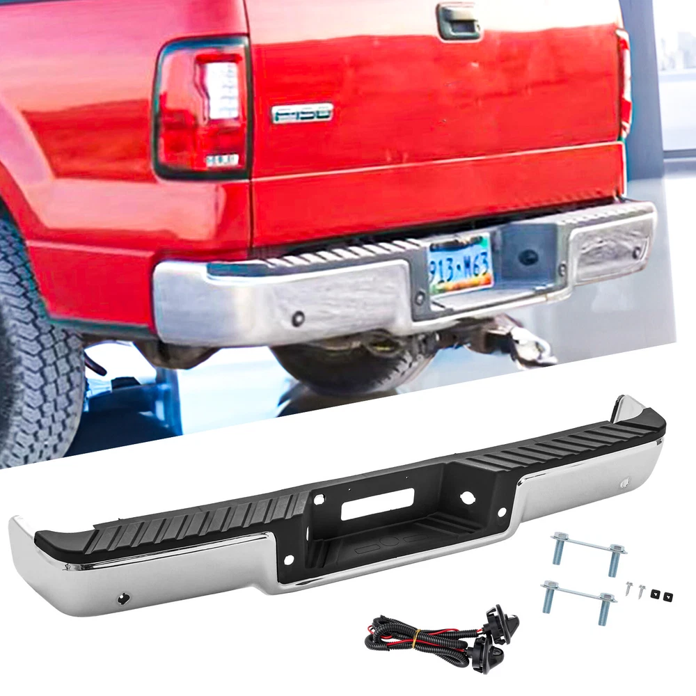 Fitment: For 2005 F-150 King Ranch For Models With Rear Object Sensor Holes For 2004-2005 F-150 (submodel: Lariat, XL) For Models With Rear Object Sensor Holes For 2006 F-150 (submodel: Harley-Davidson Edition, King Ranch, Lariat, XL) For Models With Rear Object Sensor Holes, Production Date To August 8 2005 Specifications: Finish:Chrome Material:Steel Fitment Type:Direct Replacement Type:Step Bumper Parking Aid Sensor Holes:With parking aid sensor holes Partslink Number: FO1103120, FO1103128 Package Content 1x Pickup Rear Bumper 1 x Set of License Plate Lamp with Harness Some Bolts and Screws On Dec 29, 2024 at 18:21:12 PST, seller added the following information: On Jan 2, 2025 at 05:20:46 PST, seller added the following information: