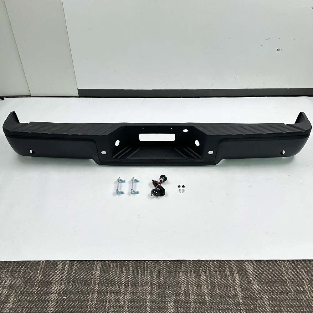 Fitment: Fit 2004 Ford F-150 Fit 2005 Ford F-150 Fit 2004 Ford F-250 Lightduty Only Fit 2005 Ford F-250 Lightduty Only Only Fit StyleSide(Straight Bed) Not Fit FlareSide(Super Crew) For Models Up To 08/08/2005 Production Date Only(F-150 2004-2006) Item Specifications: Color: Black Material: Carbon Steel Type: Bumper Assembly Placement on Vehicle: Rear Fitment Type: Direct Replacement Notice: For Models with Park Assist Holes Partslink Number: FO1103120, FO1103128 Package Content 1x Pickup Rear Bumper 1 x Set of License Plate Lamp with Harness Some Bolts and Screws On Dec 27, 2024 at 10:15:51 PST, seller added the following information: