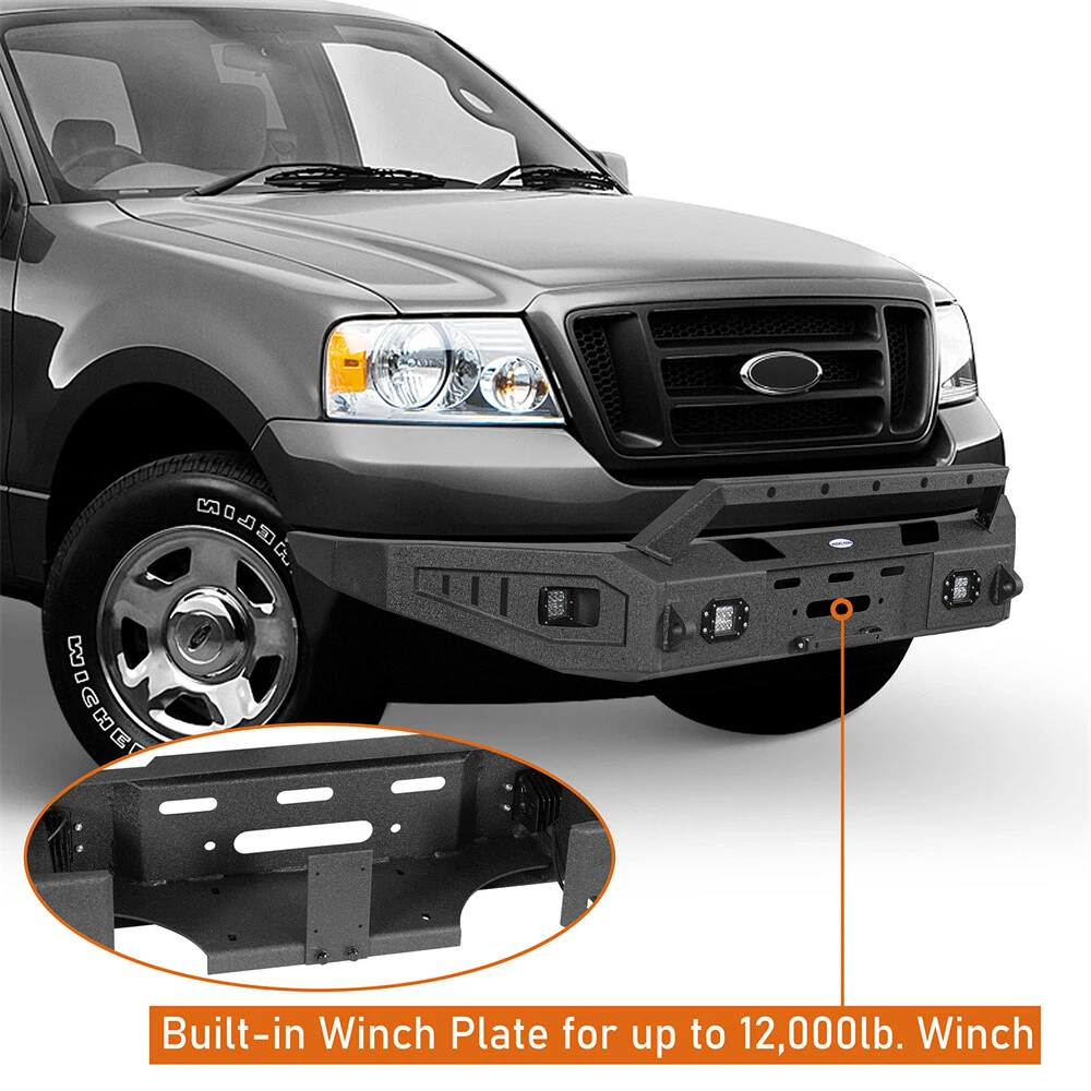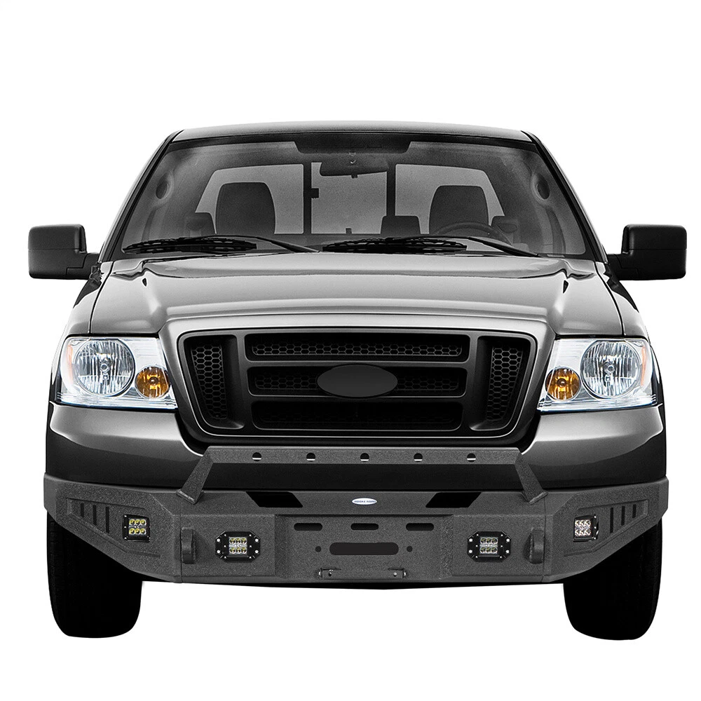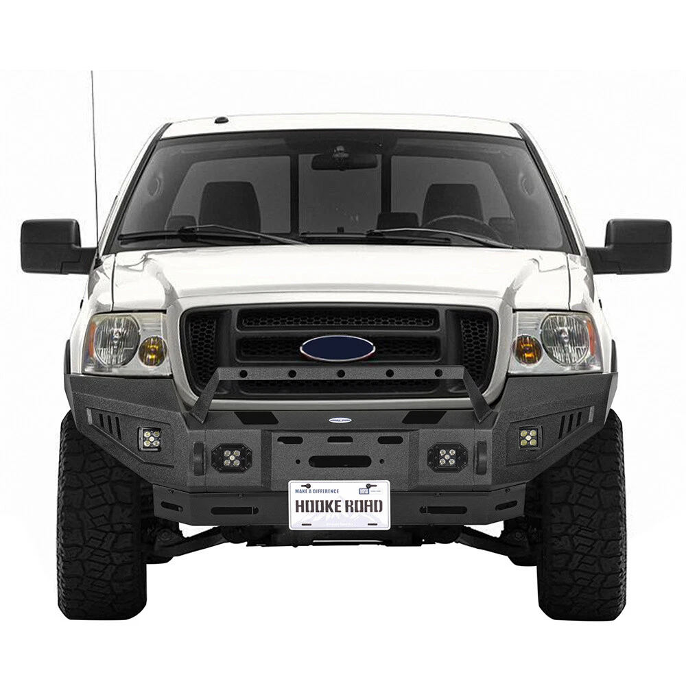 Jeep Gladiator JT Jeep Wrangler JL Jeep Wrangler JK Jeep Wrangler TJ Jeep Wrangler YJ Jeep Cherokee Jeep Wrangler CJ7 CATALOG Other Jeep series Jeep Gladiator 2020-2024 JT Jeep Wrangler 2018-2024 JL Jeep Wrangler 2007-2018 JK Jeep Wrangler 1997-2006 TJ Jeep Wrangler 1987-1995 YJ Jeep Cherokee 1984-2001 Jeep Wrangler 1976-1986 CJ 7 Toyota series Tacoma 2005-2023 Tundra 2007-2021 Ford Series Ford F-150 Ford F-250 F-350 Ford Bronco Ford Ranger Ram series Ram 1500 Ram 2500 3500 Chevy Silverado series Silverado 1500 2007-2013 Silverado 1500 2014-2015 Silverado 1500 2016-2018 GMC Sierra Motor Light& Brackets Tail & Turn Lights Fog Lights & Mounts Universal Fitment Product FULL WIDTH STEEL FRONT BUMPER W/WINCH PLATE & LED LIGHT FOR 2004-2008 FORD F150 Type 1 Front Bumper 3-piece design full-width front bumper Rugged off-road look with Hooke Road Logo Fully-welded D-Ring mounts with 4.75-ton capacity. 9500 lbs rated, 3/4'' D-rings included Built-in winch plate rated up to 12000 lbs 4×18w LED spotlights included Not Compatible with Factory Sensors Easy bolt-on installation. No drilling required. Heavy-duty 11-gauge(1/8 Inch) steel for the bumper main body, 8-gauge(11/64 Inch) for the structural connection plates and winch plate Textured black powder coat finish & Premium E-coating process inside Bumper weight: about 145 lbs Type2 Front Bumper 3-piece modular design Rugged styling and excellent protection Features high strength D-ring mounts welded both inside and out with a 4.75-ton capacity. D-rings not included. Comes with 4×18w white LED spotlights Accommodates straight LED light bars ranging from 16" to 28"(Not Included) Equipped with a flip-up license plate mounting bracket Built-in winch plate for up to 12,000 lbs winch Heavy-duty steel construction: 11-gauge(1/8 Inch) steel for the bumper main body, 10-gauge(9/64 Inch) steel for the winch plate and mounting structure plate. Textured black powder coat finish & Premium E-coating process inside Bumper weight: about 82 lbs Easy bolt-on installation without drilling or cutting Type 3 Front Bumper 3-piece modular design Practical functionality design, reinforced front-end protection Includes 4×25w LED spotlights Accommodate straight LED Light bars range from 16" to 24"(Not Included) Features high strength D-ring mounts. D-rings not included Equipped with a flip-up license plate mount Built-in winch plate for up to 12, 000 lbs Equipped with a solid skid plate Heavy-duty, high tensile 11-gauge(1/8 in) steel for bumper main body, 8-gauge(11/64 in) steel plate for mounting structure and winch plate Textured black powder coat finish & Premium E-coating process inside Bumper weight: about 90 lbs Direct bolt-on installation. No drilling required Package Included (one bumper) Front Bumper Assembly Mounting Hardware Kit Installation Instruction Fitment: Fits for 2004-2008 Ford F-150 Models DELIVERY DETAILS PAYMENT ABOUT RETURN ABOUT US CONTACT US DELIVERY DETAILS Normally, your package will be handed to USPS/FedEx by 2 workdays, and the following delivery could take 1-10 day(s). Our warehouses are in CA/NJ, US. Your package will be shipped from the nearest warehouse which has stock. During the epidemic situation, information of logistics updated as well as deliveries could be delayed caused by lack of man power from logistics company. If the logistics information shows "Shipment information sent to XXX", your package has been handed to the logistics personnel. Please be patient or contact us for further information. PAYMENT We accept Paypal, Visa, Mastercard, Apple Pay, Google Pay, American Express etc. ABOUT RETURN We provide 30 days return guarantee for all items that we sold. But please contact us first. We will be happy to exchange or refund. All returned products must be in original condition and packaging. Please take some pictures of the product to us before sending out. Unfortunately, if products have been assembled or modified, we cannot take them as returns. Please save your return tracking number or post receipt, and email it to us. We need this in case there are any issues during transit. Refund will only be issued upon our receipt of the returned parcel. If the product was damaged on the return shipping way, we can only offer partial refund. ABOUT US We are the authorized dealer of the "Hooke Road®" brand. The Hooke Road Brand has been certified as a member of SEMA. We have our own factory and design team. We make all kinds of specialty parts and accessories to make vehicles more attractive, more unique, more convenient, faster, safer, more fun and even like-new again. Wish you have a terrific off-road experience with our products. CONTACT US Please contact us via eBay message. All E-mail will be replied within 24 Hours in working days or 48 hours on weekend. If you are satisfied with your purchase, please leave us 5 Star Ratings and Positive Feedback. It will be highly appreciated! Warm Prompt: If you have any problems with this order/item, such as items not being received on time or packages being damaged, please contact us firstly. We will give you a satisfactory solution. SHOP BY BRANDS Brand Hooke Road Manufacturer Part Number Y8001020304 Type Bumper Placement on Vehicle Front Color Black Material Steel Finish Powder-Coated, Textured Manufacturer Warranty 2 Year Features Durable, No Drilling Required, Scratch-Resistant, Easy Installation Fit For 2004-2008 Ford F150 OE/OEM Part Number Y8001020304 Attachment Type Bolt-On Items Included Mounting Hardware, Bolts, Screws, LED Light Vintage Part No Performance Part Yes Bumper Cut-Outs Tow Hook Cut-out, Towing Hitch Cut-out