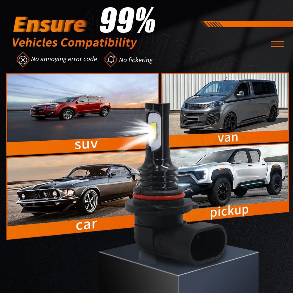 Specifications: Plug Type: 9005/HB3+ 9006/HB4 (High+Low Beam) Wattage: 80W Lumens: 6000LM Shakeproof and Long lasting up to 30,000 Hours. Color Temperature: 6000K White Voltage: DC 9-32V ( Fit 12V,24V Vehicle ) LED type: Flip AUIMSOCO Chips. Built-in Fans & Ballasts , No Other Fans & Ballasts Required,Smart Efficient Cooling System Fast Heat Dissipation. Low Voltage Protection, High Precision Constant Current driver Chip Easy installation,Just Plug and Play. Fog Light: Plug Type: 880 Voltage: DC12Vv Wattage: 4 0W LED Type: Original XB LED Quantiy: 10pcs/per bulb. Brightness: 4000LM /Bulb Life span: 30,000hrs Material: Alloy & ABS. Mail color: Black Shell. foglight type: H11 /H8 Application: Fog light, DRL( daytimerunning light) Installation: plug and play Package Content: 4X 9 005/HB3+ 9006/HB4 LED Headlight Bulbs 2x 880 Fog light Bulbs New and old packaging will be shipped randomly Install Caution: As a safety precaution, make sure that the car has had time to cool down properly before starting the installation process. Put the vehicle into park or make sure it is securely in gear. Make sure to have the ignition turned off and the keys removed. Be careful to avoid burns, especially when turning on or off the vehicles lighting. Be careful to avoid crushing or cutting the bulbs. Also make sure to not touch the bulbs with your fingers, as this will cause blotting. Fully examine the connection of the contact points, ports and the wires as faulty connections can cause lighting problems. Make certain that the end of the bulb does not come in contact with the interior light shield of the headlight when adjusting the bulb. Please install car headlight dust cover to ensure the normal operation of the lamp (to prevent dust and small ribbons to reduce the chances of bulb cooling fan broken to ensure the normal operation of the cooling system) On Nov 12, 2024 at 20:03:28 PST, seller added the following information: