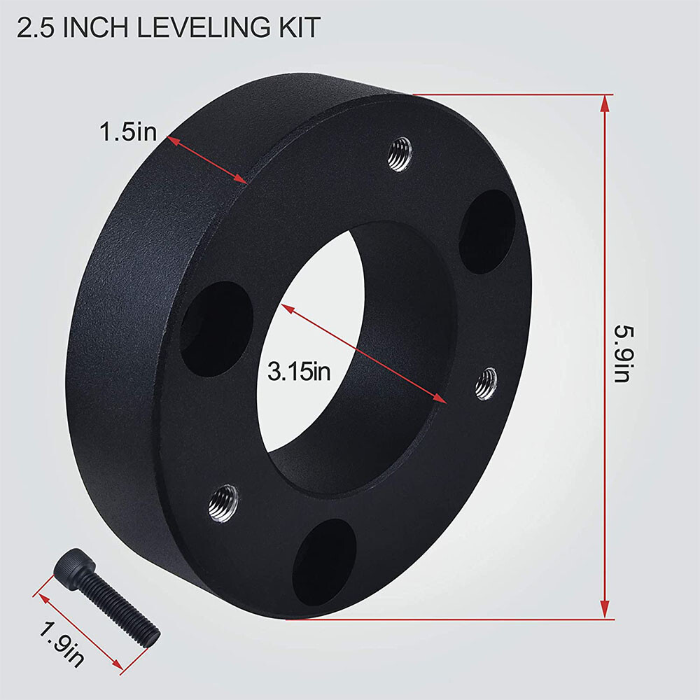 Product description This lifting kit can raise the front of Silverado or Sierra by 2.5 inches. It can be installed in about 1/2-2 hours, without the need to remove the support/coil like other kits. They are CNC machined from billet aluminum and then match the powder coating black to your factory suspension. The quality of the kit is not comparable to the welded gaskets over time. These gaskets are the strongest gaskets on the market, with 100% satisfaction guarantee and lifetime warranty. Come to you to complete all the hardware and instructions. Applicable models Fit For Ford F150 2004-2019 2WD & 4WD Does not fit 2010-2014 Ford Raptor Please note: Lift spacer thickness and lift is not a 1 to 1 ratio due to the suspension geometry. Material:High quality 6061 Billet aluminum Product description This lifting kit can raise the front of Silverado or Sierra by 2.5 inches. It can be installed in about 1/2-2 hours, without the need to remove the support/coil like other kits. They are CNC machined from billet aluminum and then match the powder coating black to your factory suspension. The quality of the kit is not comparable to the welded gaskets over time. These gaskets are the strongest gaskets on the market, with 100% satisfaction guarantee and lifetime warranty. Come to you to complete all the hardware and instructions. Applicable models Fit For Ford F150 2004-2019 2WD & 4WD Does not fit 2010-2014 Ford Raptor Please note: Lift spacer thickness and lift is not a 1 to 1 ratio due to the suspension geometry. Material:High quality 6061 Billet aluminum Colour: Black Lifting height] 2.5 inch Package Include: 2x lift front spacers And screws