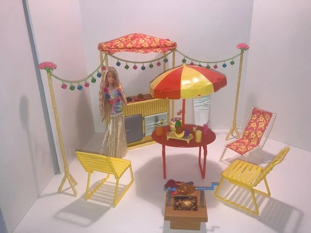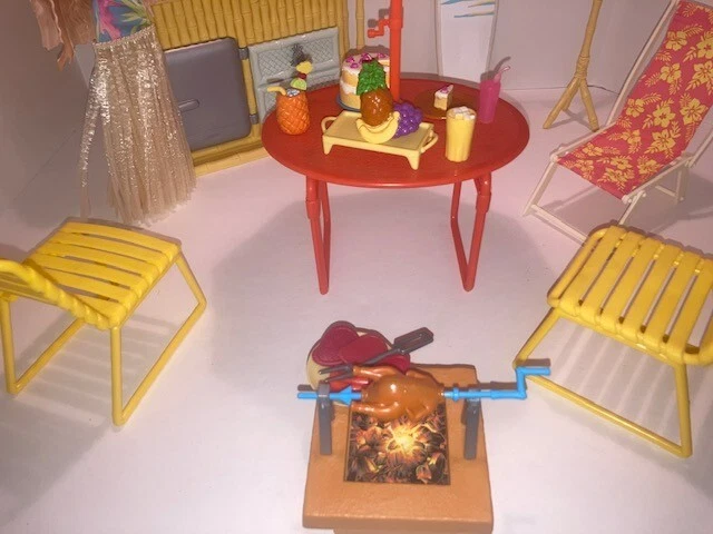 excellent. Most of the pieces are from the Barbie Cali Hawaiian Party Vacation Set. Extras have been added to the Diorama