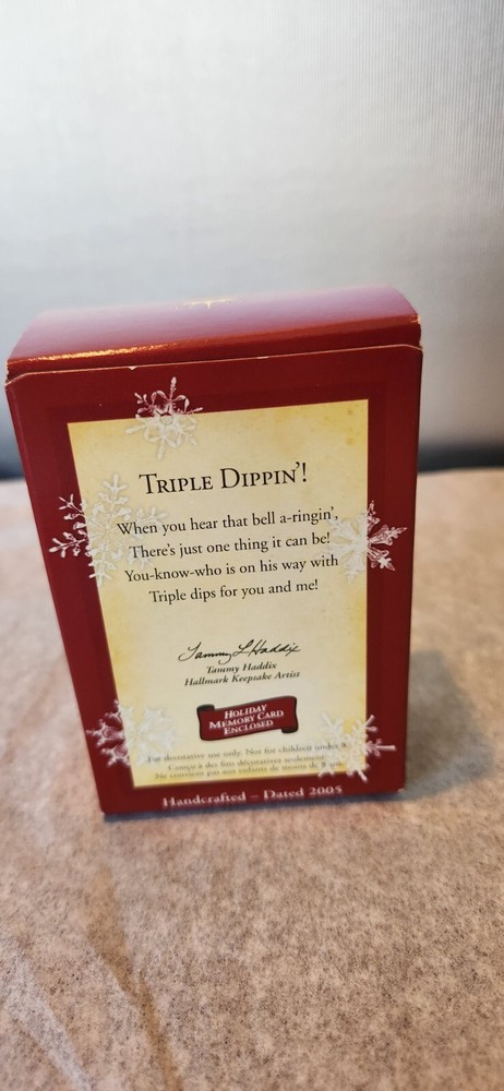 Crafted for those who appreciate the whimsy and charm of Hallmark's creations, the 2005 Hallmark Keepsake Triple Dippin' Bear Ornament is a delightful addition to any collection. Featuring a bear adorned with boxing attire, this piece captures the spirit of both playfulness and the holiday season. The charming design, complete with a playful twirl, makes it a standout ornament that will add a touch of character to your festive decor.This collectible, part of Hallmark's treasured ornaments, comes brand new in its original box, dated 2005. Whether you're an avid collector or seeking a unique decoration to bring a smile to your loved ones' faces, this ornament is a splendid choice that embodies the joy and warmth of the holiday spirit.