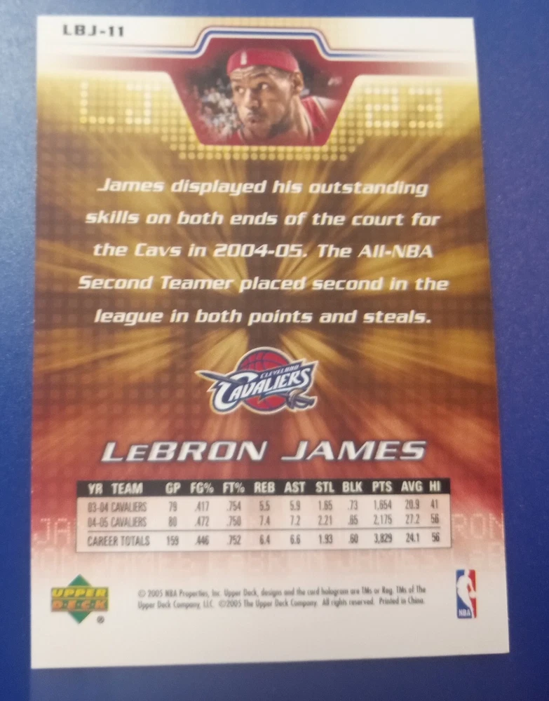 This 2005-06 Upper Deck LBJ Factory Set #11 Trading Card is a must-have for any LeBron James fan or collector. The card features a stunning image of LeBron in his Cleveland Cavaliers uniform and is a great addition to any sports trading card collection. The card is from the 2005-06 season and is part of the Upper Deck set. This Sports Trading Card is perfect for fans and collectors alike who are looking to add a rare and unique piece to their collection. The card is in great shape and has been well-preserved over the years, making it an excellent investment for anyone looking to add to their collection. Get your hands on this rare LeBron James trading card today!