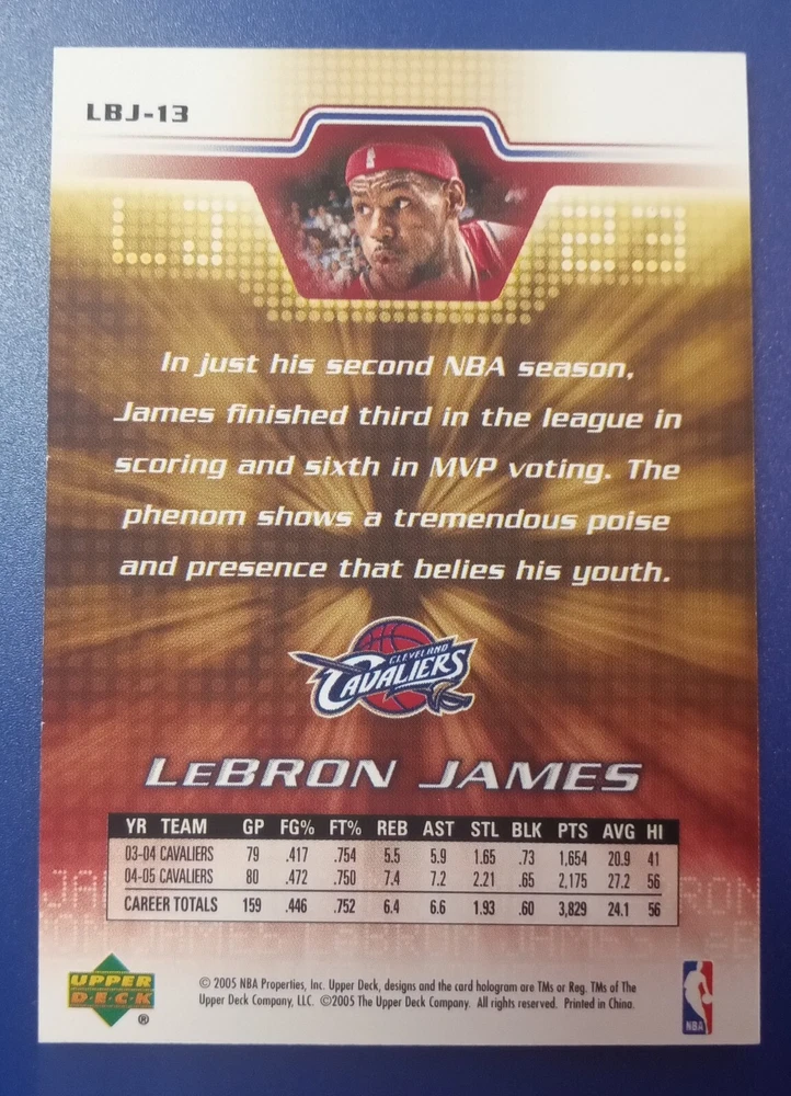 This sports trading card features LeBron James, a prominent basketball player who played for the Cleveland Cavaliers during the 2005-06 season. The card is part of the 2005-06 Upper Deck factory set, and has the card number 13. It is a great addition to any sports trading card collection, especially for fans of the Cleveland Cavaliers or LeBron James himself. The card is in excellent shape and is a must-have for collectors who want to complete their sets.
