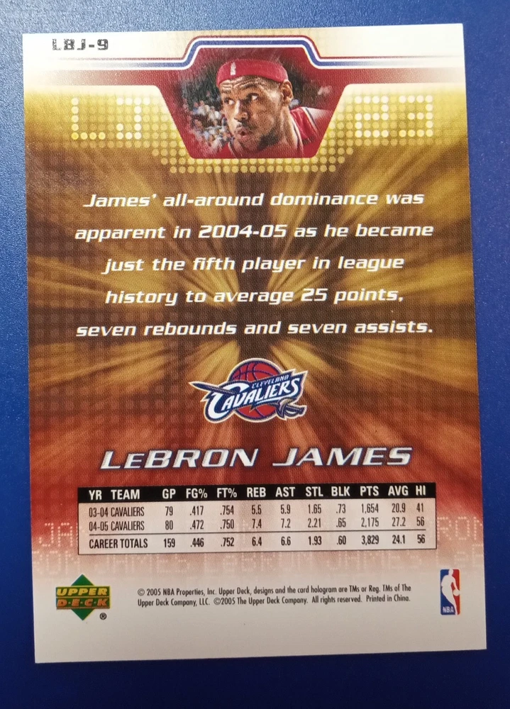 This 2005-06 Upper Deck LBJ Factory Set #9 features the legendary LeBron James, who played for the Cleveland Cavaliers during this season. The set includes a sports trading card that is perfect for any fan or collector who wants to add to their collection. The card is from the 2005-06 season and features LeBron James in his Cleveland Cavaliers uniform. It is a great addition to any collection, especially for those who are fans of LeBron James or the Cleveland Cavaliers. The set is manufactured by Upper Deck and is a part of the Sports Trading Card category. It is a great item to have for anyone who loves football and wants to add to their collection. The set is perfect for those who are looking for a unique and rare item to add to their Sports Mem, Cards & Fan Shop collection.