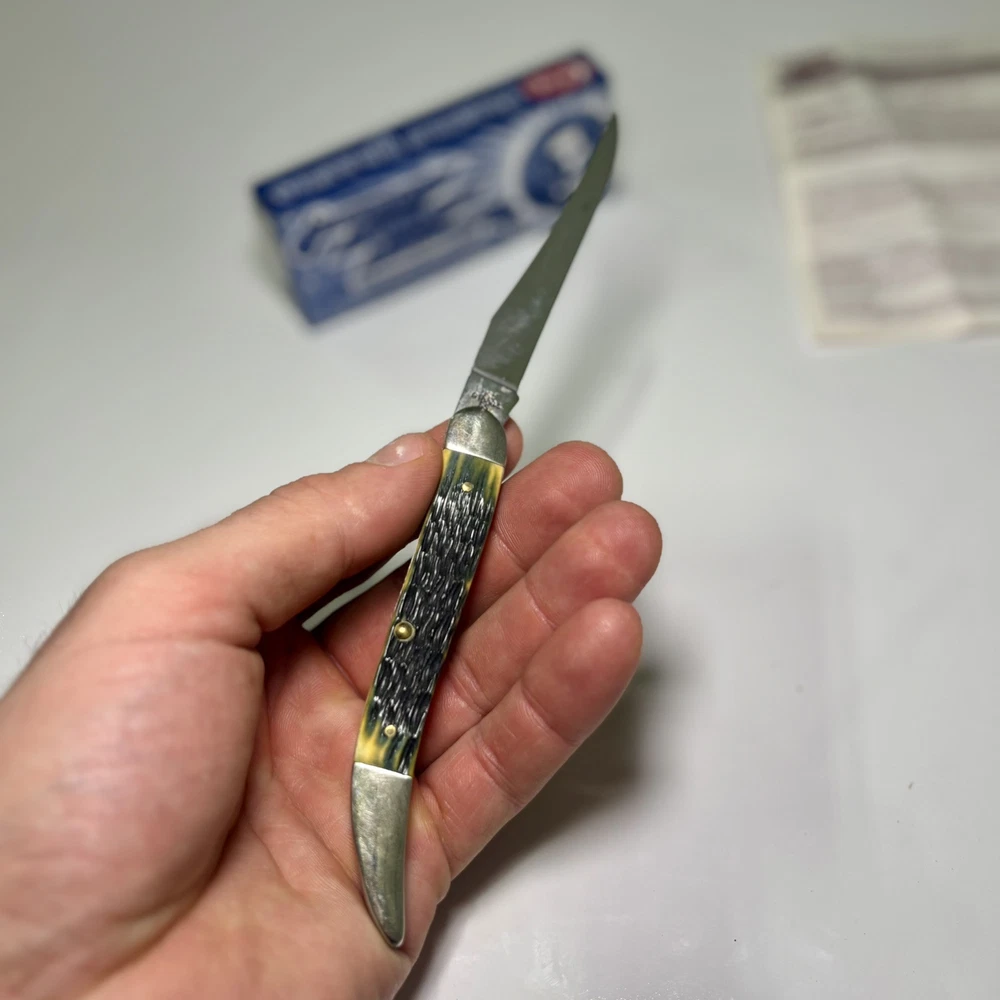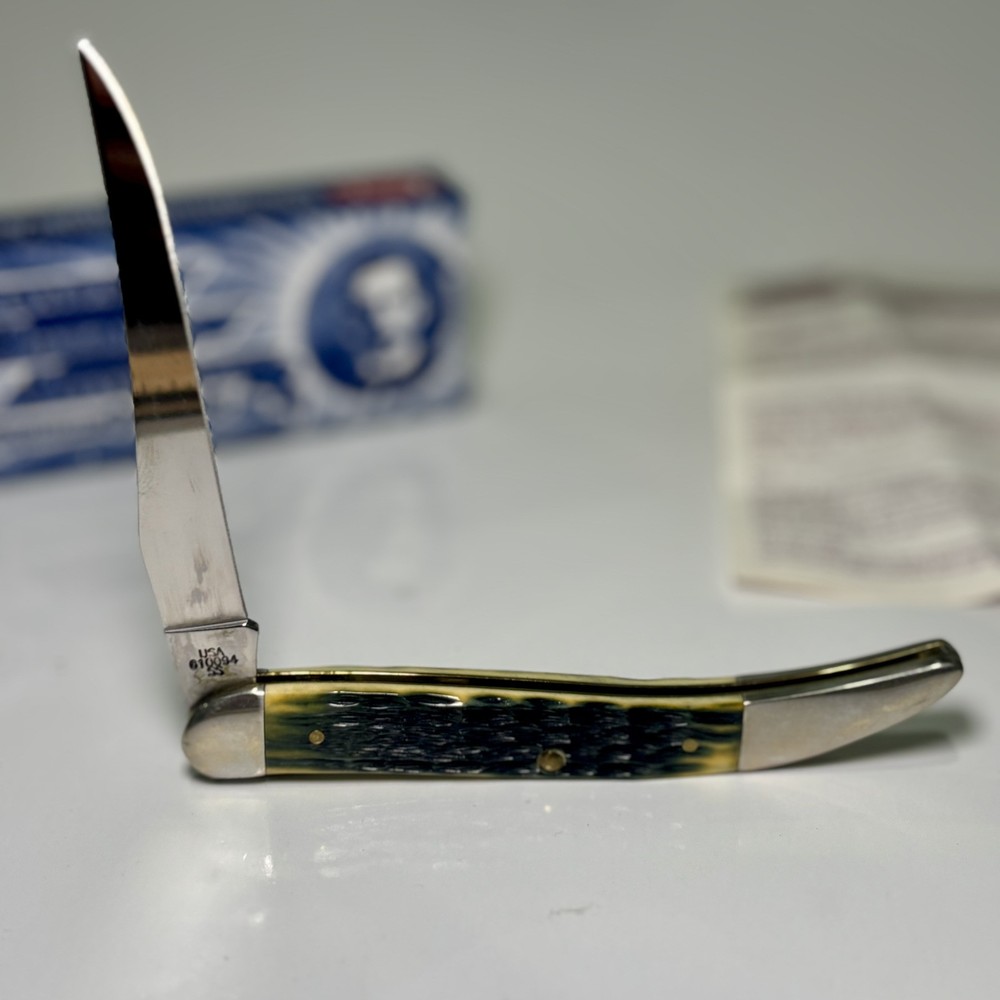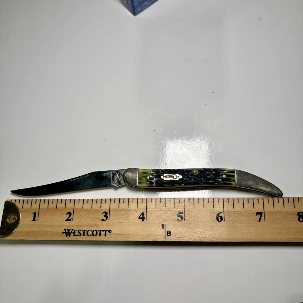 Original/Reproduction: Original Tools: Toothpick Blade Range: 2.76 - 4in. Blade Type: Clip Point Opening Mechanism: Manual Blade Material: Stainless Steel Handle Material: Bone Year: 2007 Dexterity: Ambidextrous Blade Edge: Plain Brand: Case XX Model: Crandall Cutlery Co. 610094 Country/Region of Manufacture: United States Number of Blades: 1 Color: Green