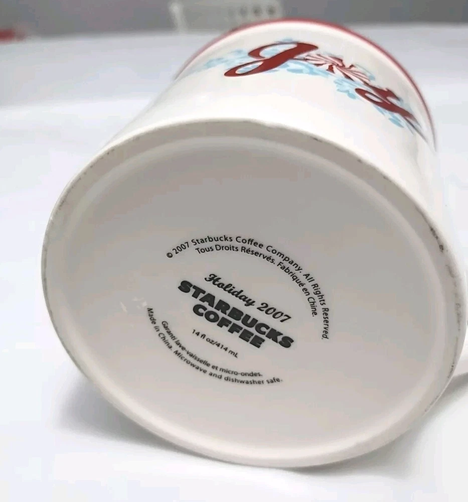 2007 Starbucks Jolly Red & White peppermint candy holiday coffee mug Measurements 4" Diameter, 5 1/2" Diameter with handle, 3 5/8" Height This mug does not have any visible chips or Cracks and is in good condition Please see photos Please feel free to contact us if you have any questions. Thank you!