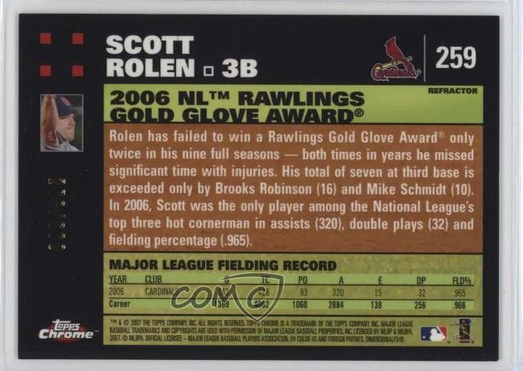 2007 Topps Chrome - Gold Glove White Refractor #259 Scott Rolen /660