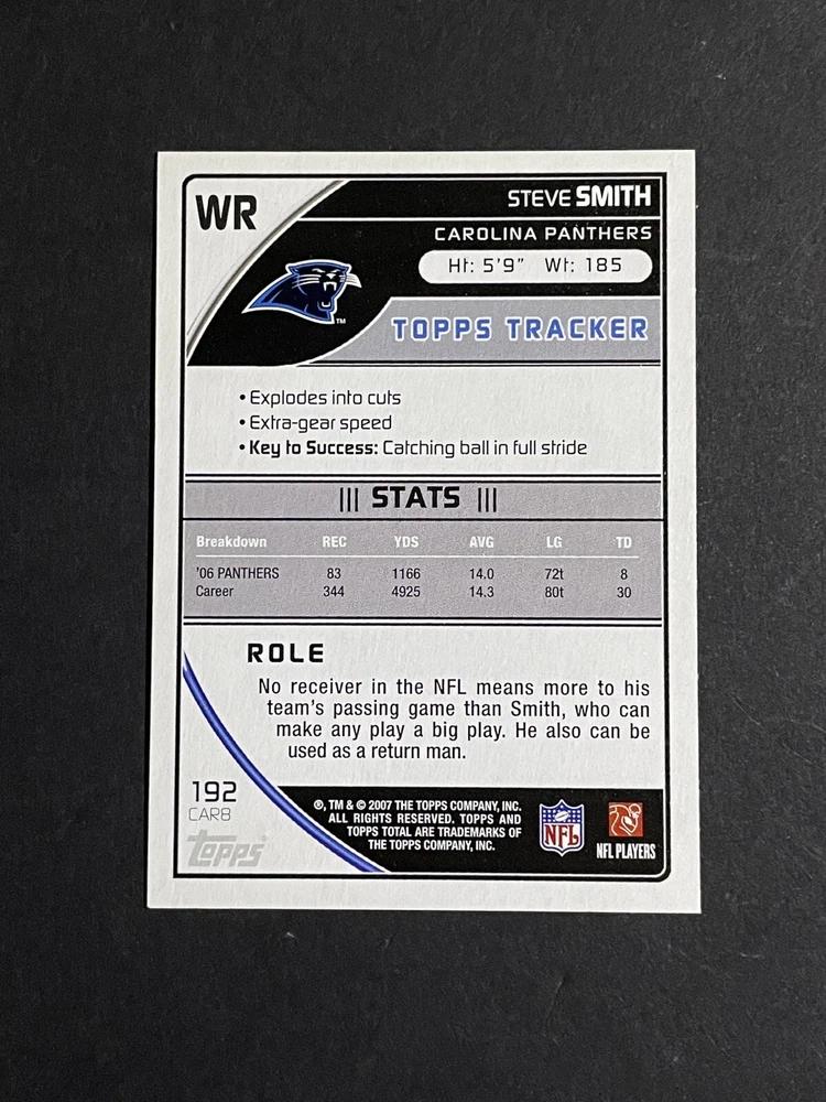 2007 Topps Total Steve Smith Gold Parallel Card #192 - Carolina Panthers