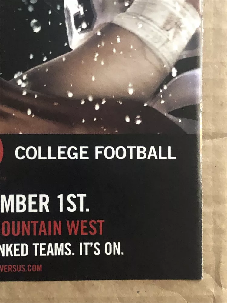 This 2007 print ad from Versus Sports Network is a perfect addition to any collection of college football memorabilia. Featuring stunning graphics and a captivating design, this original ad is a must-have for fans of the sport and sports memorabilia collectors alike. Made in the United States and showcasing college football, this ad is a true original that will stand out in any collection. Don't miss your chance to own it today. Original approximate 8”x11” vintage magazine print ad.