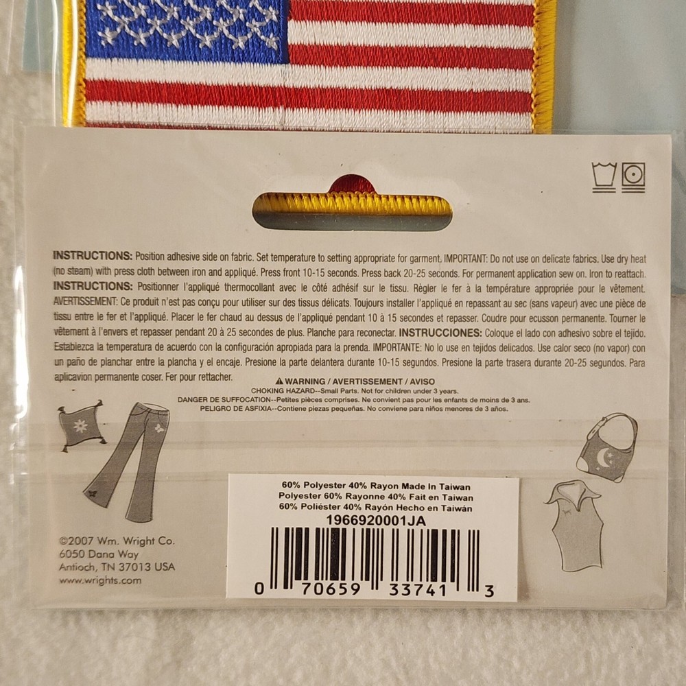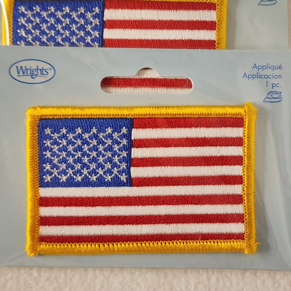 2007 Wrights Iron-On Applique 3" x 2" American Flag Embroidered Patch - Lot of 5 NEW (Item #2837 -B64)