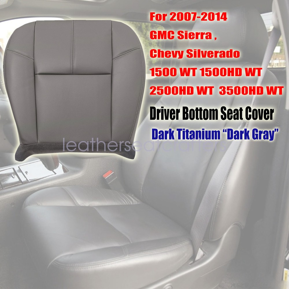 2007 to 2014 For Chevy Silverado WT Driver Bottom Leather Seat Cover Dark Gray Details Description: Type: Driver Side Bottom Replacement Seat Cover Side: Front Driver Side Color: Dark Titanium “ Dark Gray ” Color Code : 88V Material: Microfiber Leather Make: GMC, Chevy Model: Silverado, Sierra Fit Years: 2007 2008 2009 2010 2011 2012 2013 2014 This item is a new Custom-made, replacement in " Dark Gray" Color for: 2007 Chevy Silverado 1500 WT 1500HD WT 2500HD WT 3500HD WT Single-Cab, Quad-Cab, Crew-Cab, Work Truck, Base, W/T 2007 GMC Sierra 1500 WT 1500HD WT 2500HD WT 3500HD WT Single-Cab, Quad-Cab, Crew-Cab, Work Truck, Base, W/T 2008 Chevy Silverado 1500 WT 1500HD WT 2500HD WT 3500HD WT Single-Cab, Quad-Cab, Crew-Cab, Work Truck, Base, W/T 2008 GMC Sierra 1500 WT 1500HD WT 2500HD WT 3500HD WT Single-Cab, Quad-Cab, Crew-Cab, Work Truck, Base, W/T 2009 Chevy Silverado 1500 WT 1500HD WT 2500HD WT 3500HD WT Single-Cab, Quad-Cab, Crew-Cab, Work Truck, Base, W/T 2009 GMC Sierra 1500 WT 1500HD WT 2500HD WT 3500HD WT Single-Cab, Quad-Cab, Crew-Cab, Work Truck, Base, W/T 2010 Chevy Silverado 1500 WT 1500HD WT 2500HD WT 3500HD WT Single-Cab, Quad-Cab, Crew-Cab, Work Truck, Base, W/T 2010 GMC Sierra 1500 WT 1500HD WT 2500HD WT 3500HD WT Single-Cab, Quad-Cab, Crew-Cab, Work Truck, Base, W/T 2011 Chevy Silverado 1500 WT 1500HD WT 2500HD WT 3500HD WT Single-Cab, Quad-Cab, Crew-Cab, Work Truck, Base, W/T 2011 GMC Sierra 1500 WT 1500HD WT 2500HD WT 3500HD WT Single-Cab, Quad-Cab, Crew-Cab, Work Truck, Base, W/T 2012 Chevy Silverado 1500 WT 1500HD WT 2500HD WT 3500HD WT Single-Cab, Quad-Cab, Crew-Cab, Work Truck, Base, W/T 2012 GMC Sierra 1500 WT 1500HD WT 2500HD WT 3500HD WT Single-Cab, Quad-Cab, Crew-Cab, Work Truck, Base, W/T 2013 Chevy Silverado 1500 WT 1500HD WT 2500HD WT 3500HD WT Single-Cab, Quad-Cab, Crew-Cab, Work Truck, Base, W/T 2013 GMC Sierra 1500 WT 1500HD WT 2500HD WT 3500HD WT Single-Cab, Quad-Cab, Crew-Cab, Work Truck, Base, W/T 2014 Chevy Silverado 1500 WT 1500HD WT 2500HD WT 3500HD WT Single-Cab, Quad-Cab, Crew-Cab, Work Truck, Base, W/T 2014 GMC Sierra 1500 WT 1500HD WT 2500HD WT 3500HD WT Single-Cab, Quad-Cab, Crew-Cab, Work Truck, Base, W/T Heated Seats: Fits Heated Seats and Non Heated Seats Power Seats: Fits Power Seats and Non Power Seats Vehicles Seat Cover's Attached Padding: ½ Inch attached foam padding Warranty: 5 Year Package Including: 1x Driver Replacement Bottom Seat Cover If you do not know how to install, please contact us, We can provide video installation instructions Tips: This Driver Replacement Bottom seat cover, built to factory specs with Quality Leather to match the Interior of your vehicle! Our product is exactly the same as your existing cover and guaranteed to fit perfectly on your seat foam Pad. Any wrinkles seen in the pictures is from being in a box and guaranteed to disappear once installed Correctly. Please note this item is a replacement, not a slip on or pull over. (Foam pad and frame are not included). Please Note: Actual Replacement Cover. NOT A SLIP ON or PULLOVER. You will remove the old cover & then install the New Cover. Communication is the best way to solve the problem. If you have any problems after purchasing, please contact us in time, before opening return or case. Shipping policy: Payment: Returns: About us: Shipping policy: 1.Orders are usually shipped within 24 hours after your payment(except weekends & official holidays). You can log on to eBay to check your logistics tracking number. 2.Please make sure to provide us with correct,precise and detailed shipping address before purchase, and cannot change it once purchased. Payment: PayPal payment accepted only.Please purchase and pay for the item through the eBay. Returns: 1.If any item is defective upon receipt or do not work, please contact us for the condition,we will provide a solution for such cases. 2.Return is accepted within 30 days after the buyer receiving the item. About us: 1.Thanks for purchasing in our store,if you have any questions, please contact us immediately. We will provide you with the high quality service. 2.If you are satisfied with our products, please give us a positive feedback. On Jan 16, 2025 at 01:49:01 PST, seller added the following information: