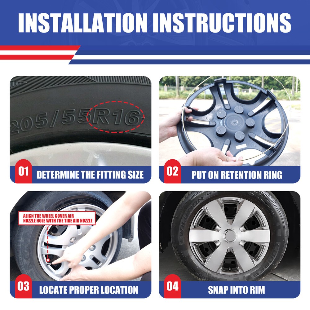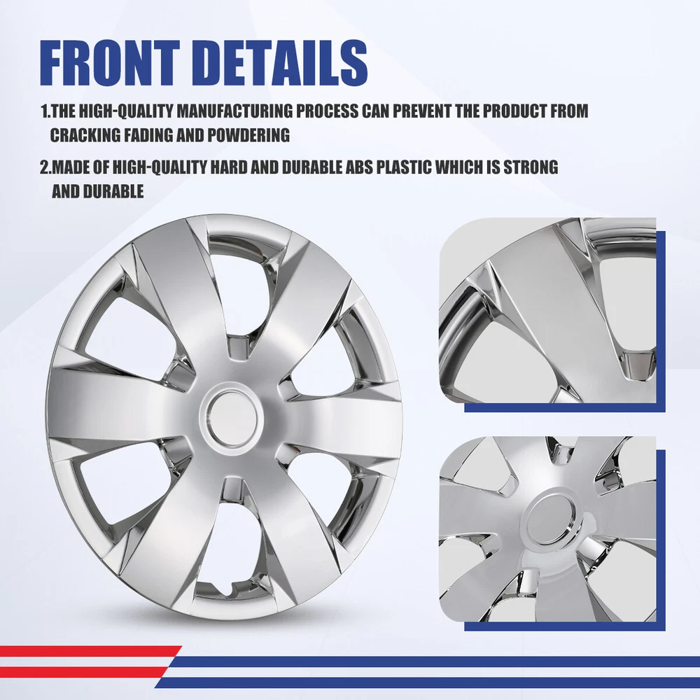 Head Lights Tail Lights Fog Lights Turn Signal Bumper Fender Flare Inner Fender Hubcaps Refrigerator Other Items for sale Head Lights Tail Lights Fog Lights Turn Signal Bumper Fender Flare Inner Fender Liners Portable Refrigerator 16'' set of 4 Wheel Covers Full Rim Snap On Hubcaps For 2007-11 Toyota Camry Specification: Fits either LH (Driver Side) or RH (Passenger Side) Rear and Front Type: Wheel Hub Caps Compatible Wheel Diameter: 16 inches Features:Car Wash Safe, Easy to Install, No Tools Required Material: ABS Number in Pack: 4 Wheel Type: Steel Placement on Vehicle: Front, Left, Rear, Right Installation Type: Snap-On Description: 100% Brand new in box. Unused, unopened, undamaged item in its original packaging Rust proof and corrosion resistant ABS Plastic Easy push on installation with no need for tools Stainless Steel retention ring for durability and maximum grip Designed with a tire steam cut out on the hubcap and retention ring Premium designs and triple coat color paint hubcaps Come in a complete set of 4 caps and 4 retention rings About this item: ✔️Please Ensure to Check your Tire/Wheel Size Before Purchase! ✔️Designed for (P15) 16” Wheels and will not fit over aluminum alloy wheels. ✔️ Easy to Install - Mount our car hub caps onto your wheels in just 10 minutes! ✔️ Customize Your Ride - No need for a total overhaul to enhance your car's look! Conveniently replace run-down, aging or rusty car hubcaps with a stunning rim cover. ✔️Designed from OEM Replica Style Wheels– For Replacement with Fast & Easy Snap-on Installation - Made from Premium ABS Material – Lab & Road Tested for Performance and Ultimate Durability. ✔️Adjustable Retention Rings assures Firm Grip Gives Support to the Hubcaps Making Sure They Stay in Place. Locate the Curve on the Retention Ring and Match to the Tire Air Valve to Install. Payment Shipping Return About us Contact us Payment Appreciated for the prompt payment, Contact us if bid by mistake, system open unpaid item automatically. Payment must be complete within 3 days from the date you purchase or after the end of auction. Items unpaid within 3 days of the auction end will be forfeited. We reserve the right of cancel the order and re-selling the items. Shipping All shipment will ship by UPS or USPS . All items will be ship within 1 working days , and we will ship out all orders as soon as possible after payment verified, please allow up to 1-4 business days for delivery. CANADA & International customers please note: your government might charge a duty tax (brokerage fees). We do not responsible for any custom duty or import tax. Why Choose the US Stock? 1. Us Local Shipping, No Extra Customs Cost to the US. 2. Fast Delivery: 1-4 Working days Delivery. 3. Best After-Sales Service!!! Return The buyer is responsible for all return shipping including a result of customer error or defective item. 1) If you received an incorrect, damaged, defective, or item not as described, contact us for full refund or replacement on our cost. 2) If you want to return the item, please contact us within 60 days after package received. Return products must also be in its original condition: including box, packaging and all other accessories. About us We are the best auto parts, we have been pursuing excellence, continuous exploration as the slogan, let customer satisfaction is our purpose! We adhere to the United States local delivery, one year warranty! Welcome! Contact us How Should You Contact us? Please Read The Item Description And See if The item Fits Your Vehicle Exactly. If You Found Any questions, Feel Free to email us by "Ask a question" Our Office Hours Are Monday - Friday 8:00am - 5:00pm PST / 11:00am - 8:000pm ET, We Do Not Answer Any E-Mails On Weekend, And We Will Reply All E-Mails In The Order It Was Receive. All E-Mail Take Us Around 24 Hours To Respond To Any E-Mail. We Are Close During The Weekends And We Do Not Answer Any E-Mails During That Time.