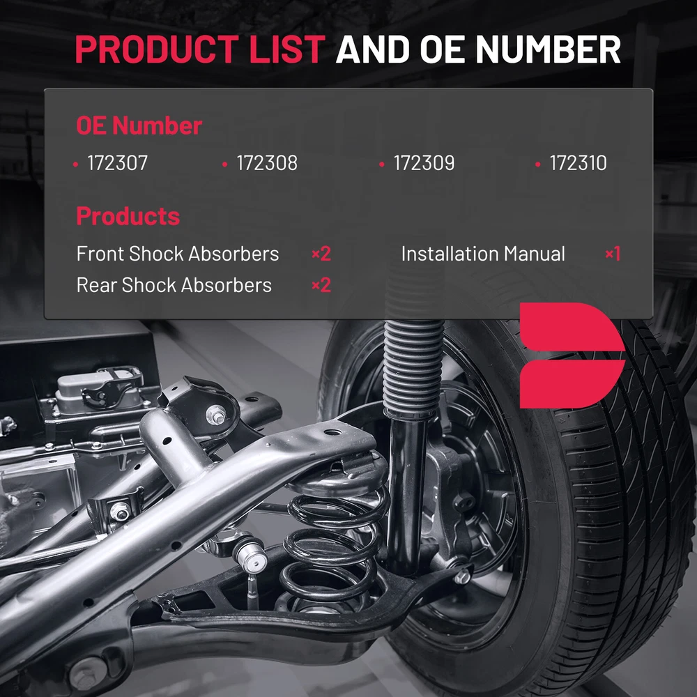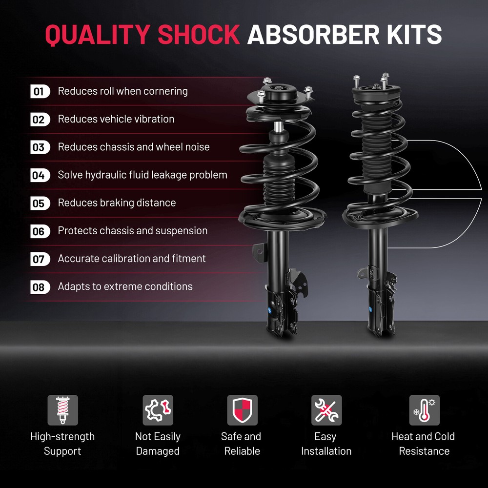 About this item Compatible with: for Toyota Camry 2.4L 2007-2011, 2.5L 2010-2011 Replace for Part Number: Replace 172307 172308 172309 172310 Kit Includes: 1x front left strut shock assembly with coil spring, 1x front right strut shock assembly with coil spring, 1x rear left strut shock assembly with coil spring, 1x rear right strut shock assembly with coil spring 4X Front & Rear Complete Shock Struts W/ Coil Spring For 2007-2011 Toyota Camry 4pc Front & Rear Coil Spring Ready Struts Kit Fits Driver and Passenger Sides Kit Includes: 1x Front Driver Side Complete Strut & Spring Assembly - 172308 1x Front Passenger Side Complete Strut & Spring Assembly - 172307 1x Rear Driver Side Complete Strut & Spring Assembly - 172310 1x Rear Passenger Side Complete Strut & Spring Assembly - 172309 Each Strut Assembly includes: Strut Coil Spring Boot Bumper Kit Spring Seat Isolator FITS: MAKE MODEL YEAR RANGE SPECIFIC DETAILS LEXUS ES350 2007 - 2009 Built Before 07/2009 TOYOTA AVALON 2006 Built After 01/2006 TOYOTA AVALON 2007 - 2012 All Models TOYOTA CAMRY 2007 - 2011 All Models Payment Delivery details Terms of sales About us Contact us Payment 1.We only accept PayPal. PayPal is the only online payment method we accept. Please make sure you have a valid/confirmed PayPal account prior bidding. 2.All Paypal Payments must be Confirmed. Payment must be made within 48hrs of the auction end time. Non-Paying bidders will be reported. 3.When you get your package,maybe you will pay some charges, it's taxes for local customs,not pay to us, and the fees are depends on the customs, all buyer are same. Delivery details 1.Items will be shipped within 2 business days after payment is received. 2.We ship to your eBay address. Please make sure your eBay address is correct. Buyer takes responsibility if eBay address is wrong. 3.Import duties, taxes and charges are not included in the item price or shipping charges. Please check with your country customs office for these additional charges. 4.We shipping using UPS or USPS from our nearest warehouse to you. Tracking numbers will be emailed upon shipment. Terms of sales 1.Please feel free to email us if you have any question. 2.We appreciate you contact us via eBay message when you are not satisfied rather than open case or leave negative feedback directly. We'll try our best to solve the issue. 3.Refund will be issued once we receive your returned items. Buyer is responsible for all return shipping charges. 4.Please contact us for return process before you return the item. 5.All items for exchange or refund must be returned in "as new" condition. About us We are the responsible seller ,always provide high-quality products and best service .If you have any questions, please contact us, and will try our best to help you. Please contact us by eBay Message, and we will reply you within 24 hours. Thank you very much! Contact us We are the professional auto parts manufacturer , and provide line lock, AN hose end fittings , fuel line , fuel filter , fuel regulator , exhaust cutout , exhaust tips , exhaust muffler and so on .The quality of the product to be secured. If you have any questions or any needs , please contact us , and will try our best to help you.