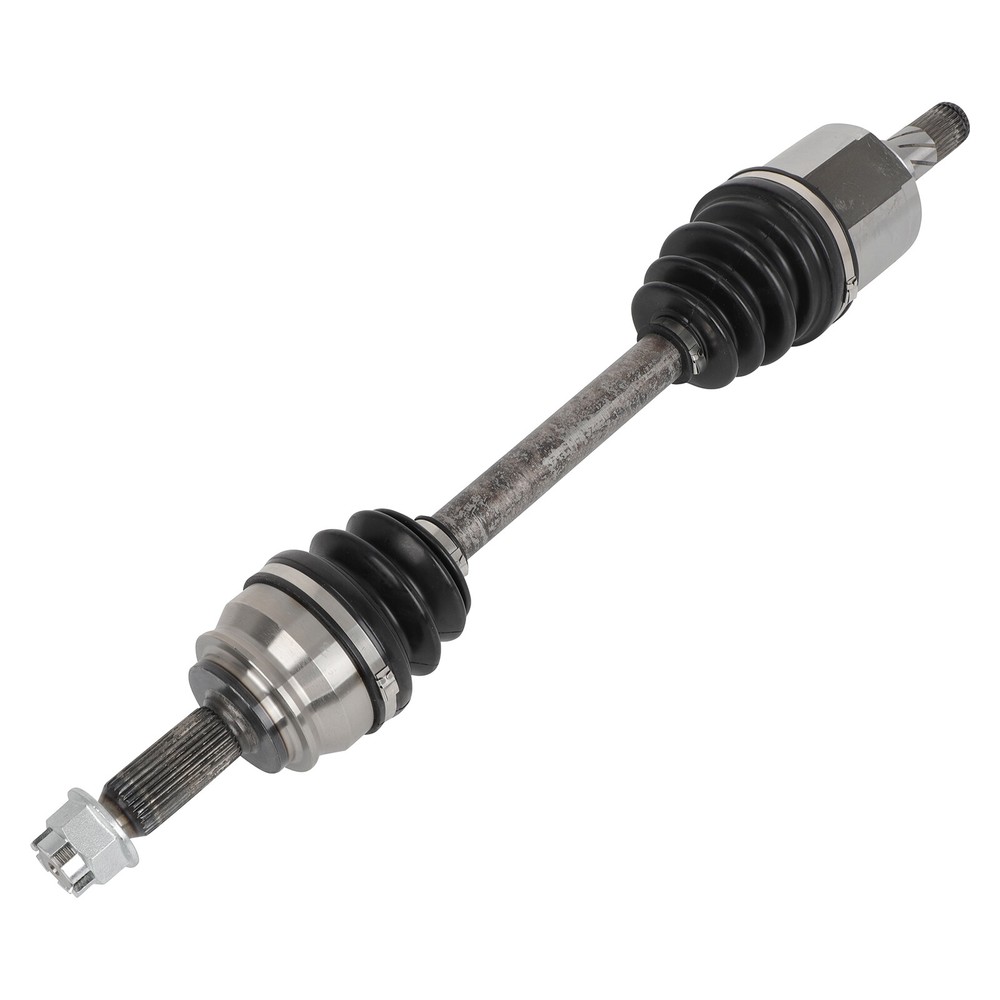 Specifications: Brand New - 100% Brand New and high quality auto parts. Easy installation - Direct Plug In Replacement. Heat Treated - All CV axles are heat treated to the highest standards to provide premium strength, increased tensile, and extended service life. Quality Control - All CV axles undergo an extensive quality control process to ensure a long and trouble-free performance. Precision Fitment - Machined splines for precise fit to OEM specifications. Premium Materials - Only premium raw materials to manufacture their products. Signs of Worn CV Axles: For Dodge Caliber 2007-2012 for Jeep Compass 2007-2017 Front Left CV Axle Shaft Specifications: Brand New - 100% Brand New and high quality auto parts. Easy installation - Direct Plug In Replacement. Heat Treated - All CV axles are heat treated to the highest standards to provide premium strength, increased tensile, and extended service life. Quality Control - All CV axles undergo an extensive quality control process to ensure a long and trouble-free performance. Precision Fitment - Machined splines for precise fit to OEM specifications. Premium Materials - Only premium raw materials to manufacture their products. Signs of Worn CV Axles: Clicking or Popping Noises A prominent sign of a worn CV axle is a clicking or popping noise, especially during sharp turns or when accelerating. This noise may indicate that the CV joint is damaged or the protective boot has torn, allowing dirt and debris to enter and damage the joint. Vibration or Shaking If you experience vibrations or shaking, particularly during acceleration, it can be a sign of CV axle wear. Worn CV joints can cause the axle to wobble, resulting in an unsettling sensation in the steering wheel or the vehicle as a whole. Grease Leakage Damaged or worn CV axle boots may lead to the leakage of grease around the axle joints. Inspect the boots visually for cracks, tears, or signs of deterioration. Grease leakage can accelerate wear and lead to joint failure if left unaddressed. Axle Boot Damage The CV axle boots are protective covers that keep dirt and moisture out while retaining grease within the joint. If the boots are torn or damaged, they should be replaced promptly to prevent further damage to the CV joints. Factors Affecting CV Axle Lifespan: Mileage and Driving Conditions While there is no set mileage at which CV axles must be replaced, factors such as mileage and driving conditions can affect their lifespan. Aggressive driving, frequent acceleration, heavy loads, and driving on rough or unpaved roads can accelerate wear and lead to earlier replacement. Regular Maintenance Regular inspections and maintenance can help identify early signs of CV axle wear. Routine inspections should include a visual check of the boots, listening for unusual noises, and monitoring any vibrations or steering irregularities. How To Change Your CV Axle: The process below is a general guide on the steps to replace a CV axle. Your vehicle may be slightly or drastically different, depending on the make and model. Refer to your vehicle’s service manual to see the exact steps that you’ll need to follow. You’ll also notice that we recommend using an impact wrench to remove the axle nut, but note that doing the job by hand is safer when done while the car is on the ground. If you’re following the by-hand route, step five should be performed before jacking up the car. Make sure the vehicle is in Park or that it is in gear with the parking brake set. Jack up the car and remove the wheel on the side where you will be working. Locate the axle nut. It will be in the direct center of the hub or wheel assembly where you removed the wheel. Some vehicles have a cotter pin to secure the axle nut. You’ll need to remove it using pliers to straighten the pin so it can be pulled out. You can spray it with lubricant if it’s rusted or stuck. Now it’s time to remove the axle nut. In some cases, this step may require quite a bit of effort. If this is the case, your safety bet is to do this step before jacking the car up. This is where the optional impact wrench will come in handy. The wrench will help you safely remove the axle nut without having to use a pry bar. Carefully remove the bolts holding the brake caliper brackets in place and remove the calipers. Instead of dropping the caliper to dangle on the brake line, use a carabiner or other small hook to support the caliper and keep pressure off the brake line. Loosed the bolts holding the outer tie rod to the steering knuckle. If there’s another pin here, you’ll again need to use pliers to straighten it out. In some cases, the steering knuckle and tie rod will not want to be separated. This will require a few light taps with a hammer or mallet. Remove the bolts holding the hub to the strut tower. You’ll need to keep the nut from turning while unbolting the hub. Look further down the axle to see where it meets the transmission. Use your pry bar to pry the axle from the CV joint. You should be able to remove the axle at this point. You might see transmission fluid or have some leak while prying the axle. This is completely fine, but you may want to set up a pan or tray to catch the fluid. Insert the new axle into the transmission where the old one was removed. You can use your mallet or a hammer wrapped in a towel to carefully coax the axle into position. Attach the new axle to the hub and begin replacing the bolts you removed earlier in the process:Hub/strut tower; Tie Rod/steering knuckle; Caliper Replace the axle nut. Here, as before, use an impact wrench if you have one to safely tighten the nut. If you don’t have one, get the nut as tight as you can without yanking on it while it’s up on stands. Replace the wheel and lower the vehicle. If you need to tighten the axle nut further, it’s best to do it with the vehicle on the ground, so that you can really push on a wrench or bar to tighten without worrying about the vehicle falling. FAQs Abou
