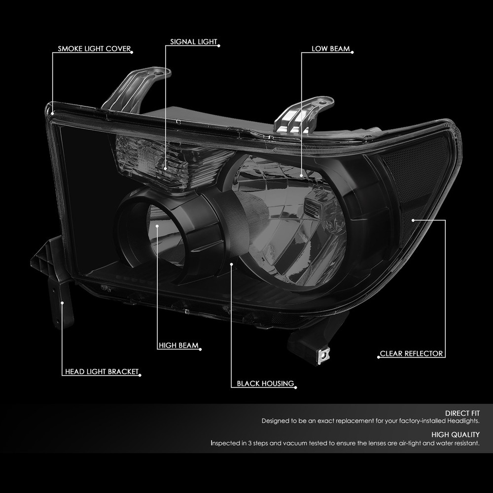 Welcome to our eBay store DPT Motorsport Business Hours: Monday - Friday, 9 AM to 6 PM PST. Store Home Payment Shipping Returns Need Help Add to Favorites About Us For 2007-2013 Tacoma Sequoia Pair Tinted Clear Side Headlight Head Lamp+Tool Box Product Description When it comes time to remove and replace or repair your headlights, first you need to remove them from your vehicle. Our specialized tool kit contains the most common tools required for removal and replacement to simplify the job. Headlight: Direct Bolt-On OE Fitment or Replacement for the Stock Unit Comes with a Complete Set of Headlight (Driver and Passenger Side) Brings a Different Appearance to Vehicle that's Great for Show use or to Replace Old and Worn Headlights Requires no Modification or Drilling Headlight Installation Tool Kit: Brand New In Original Box, Never Been Used Exactly The Same As Picture! 8.5" X 4.25" X 2.25" Heavy Duty Blow Mold Case for Easy Transport & Storage Contains Most Common Tools Needed for Headlight Removal 20 Piece Tool Kit Chrome Vanadium Construction Metric Sized Sockets & Bits Chrome Polish Finish Rubberized Non Slip Grip Includes: 1 X Pair of Headlights (Left & Right) 1 X 1/4" Drive Ratchet 1 X 2" 1/4" Drive Extension 1 X 3 1/4" Drive Extension 1 X Bit Drive 6-Piece Sockets : 7mm, 8mm, 9mm, 10mm, 11mm, 12mm 6-Piece 6-Point Star Torx Sockets : T10, T15, T25, T30, T35 2-Piece Philips & Standard Screw Driver Bits Trim Removal Tool Bit extension Notes: Compatible with: 07-13 Toyota Tundra 08-17 Toyota Sequoia Does NOT fit 09-12 Tundra with Headlight Level Adjuster Does NOT fit 2012 Sequoia with Headlight Washer 100% Brand New Professional Installation is Highly Recommended Installation Instruction is NOT Included About Us Payment Shipping Returns Feedback Contact Us Have any questions or need info about something you already purchased? We'd love to hear from you! For items already purchased, please kindly include your eBay item number for faster response time. DPT Motorsport operates from Monday through Friday, 10 am to 6 pm (PST). ATTENTION: We are closed on Saturdays and Sundays. All messages will be replied in the order it was received during business days Thank you for choosing DPT Motorsport and happy bidding! We accept PayPal only. We reserve the right to file Non-Paying Bidder if payment is not received 10 days after the auction ended. Shipping Methods All shipments are made via either UPS or United States Postal Service depending on the types of products purchased. Majority of our orders will be ship within 2 business days (mostly within 24hrs) (All mail transit time stated above is best estimated but not guaranteed.) All shipments requires physical addresses, no PO Box address will be shipped. Shipping and handling charges are not negotiable. Return Policy **We stand behind the products we sell. If for any reason you are not satisfied with your purchase, we'll be happy to process a refund the product less S&H within 30 Days of your purchase. All return items will require a RMA number, which is given by our Customer Service Department only. Please allow 10-14 days for returns and exchange to be process. Please inspect all your order(s) upon receipt. All return items MUST be in brand new condition which means the item is never installed and kept in the original packaging. We will not reship replacement(s) before we get a claim approval for the lost or stolen item(s) or the returned item from customers. In most cases, all shipping and handling fees are non-refundable, unless it has been approved by our Customer Service Department. Any item(s) that the buyer states as defective will be tested by our Returns Department, if there is no problems or errors found during testing. Once the RMA# is issued, the buyer will have 30 days to return the item, if any items that is return after 30 days, the item(s) are subject for rejection. All items are brand new unless otherwise stated. PROFESSIONAL installation is highly recommended. Buyer assumes all risk on usage. About Us Have any questions or need info about something you already purchased? We'd love to hear from you! For items already purchased, please kindly include your eBay item number for faster response time. DPT Motorsport operates from Monday through Friday, 10 am to 6 pm (PST). ATTENTION: We are closed on Saturdays and Sundays. All messages will be replied in the order it was received during business days Thank you for choosing DPT Motorsport and happy bidding! Payment We accept PayPal only. We reserve the right to file Non-Paying Bidder if payment is not received 10 days after the auction ended. Shipping Shipping Methods All shipments are made via either UPS or United States Postal Service depending on the types of products purchased. Majority of our orders will be ship within 2 business days (mostly within 24hrs) (All mail transit time stated above is best estimated but not guaranteed.) All shipments requires physical addresses, no PO Box address will be shipped. Shipping and handling charges are not negotiable. Returns >Return Policy **We stand behind the products we sell. If for any reason you are not satisfied with your purchase, we'll be happy to process an exchange or refund the product less S&H within 30 Days of your purchase. All return items will require a RMA number, which is given by our Customer Service Department only. Please allow 10-14 days for returns and exchange to be process. Please inspect all your order(s) upon receipt. All return items MUST be in brand new condition which means the item is never installed and kept in the original packaging, otherwise you will be subjected to a 20% restocking fee. We will not reship replacement(s) before we get a claim approval for the lost or stolen item(s) or the returned item from customers. In most cases, all shipping and handling fees are non-refundable, unless it has been approved by our Customer Service Department. Any item(s) that the buyer states as defective will be tested by