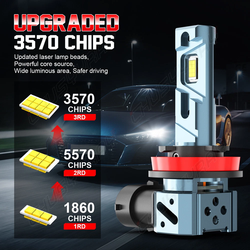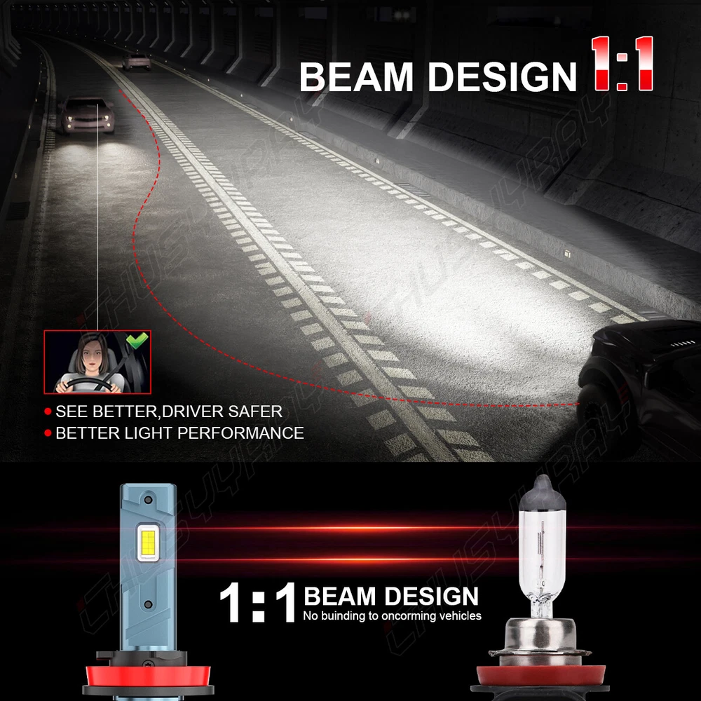 Our Product Advantages: High brightness High temperature resistant High purity of luminescence Good stable performance Easy installation, just plug & play Energy saving environmental This item is 6pcs of extremely bright high power 6000K LED headlight bulbs, Size 1:1 Halogens design,direclty plug and play for most vehicles, total 50000 lumens for both High Low sides, especially designed for replacing the headlamp, fog lights or DRL (daytime running light). Specification LED Chip: Customized High Powered Lighting Sources. Warranty: 2 Year guaranteed for manufacturer quality. Color: 6000K White. Light output: 50000 lumens for both bulbs. Waterproof: Yes, IP68. CANBUS ERROR FREE: No. For most vehicles, just directly plug and play. Yet for some vehicles with CAN-BUS system, it may require install decoder or load resistor to avoid hyper flash or fast blinking. Cross Reference Number: H11/H8/H9. Application: replacement for led headlight,fog light,or DRL(daytime running light),etc. Voltage: 12V~24V, built in IC driver,much stable current than normal led bulbs in the marker, longer life span. Perfect replacement for the halogen and incandescent headlamp, Easy installation about taking about 20 minutes according to the installation manual included. Please Note: Please check your car manual or original bulb to confirm the bulb size, length is correct or not before purchasing to save your time. Package : One set(4pcs) super bright H9+H11 white LED headlights.