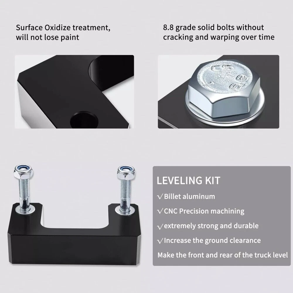 Just installed this 2.5" leveling kit on my Silverado and it made a huge difference! The stance looks aggressive now, and the ride feels just as smooth as before. Installation was straightforward—no need to mess with the struts or coils. The hardware is solid, and everything fit perfectly. Definitely recommend this for anyone wanting to level their truck without breaking the bank. Professional install is a good idea if you're not super confident, but it's totally doable in a couple of hours. Great value for the money!